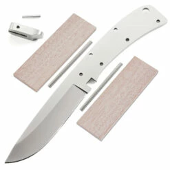 This version of the Midwest Hunter is the combo kit. It comes with the Midwest Hunter blade, guard, Mahogany handle scales, plus stainless steel pinstock to simplify the completion process. This is a great project for a weekend knife making session. Spend some quality workshop time with this knife kit and enjoy the fun of custom knife making and customization.