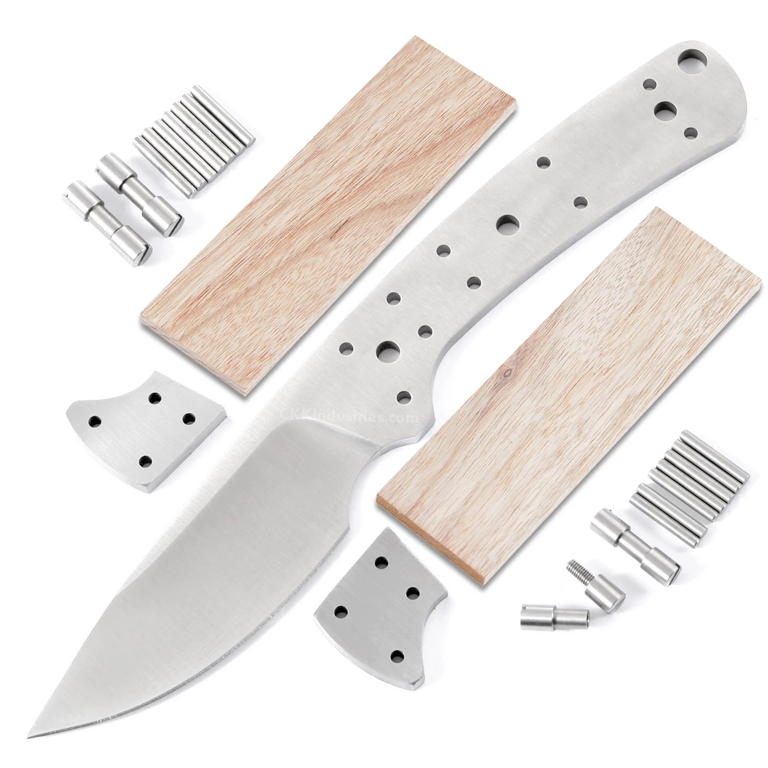 This version is the combo kit. It comes with the Modern Skinner blade blank, bolsters, pins, handle bolt fasteners plus one pair of Canarywood knife handle scales to simplify the completion process. Add a touch of proper finishing and create a fabulous knife that you’ll be proud to own and carry.