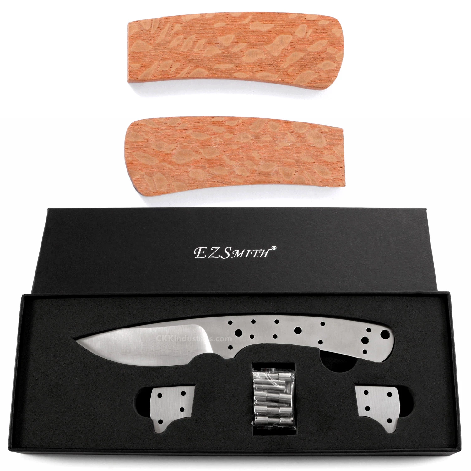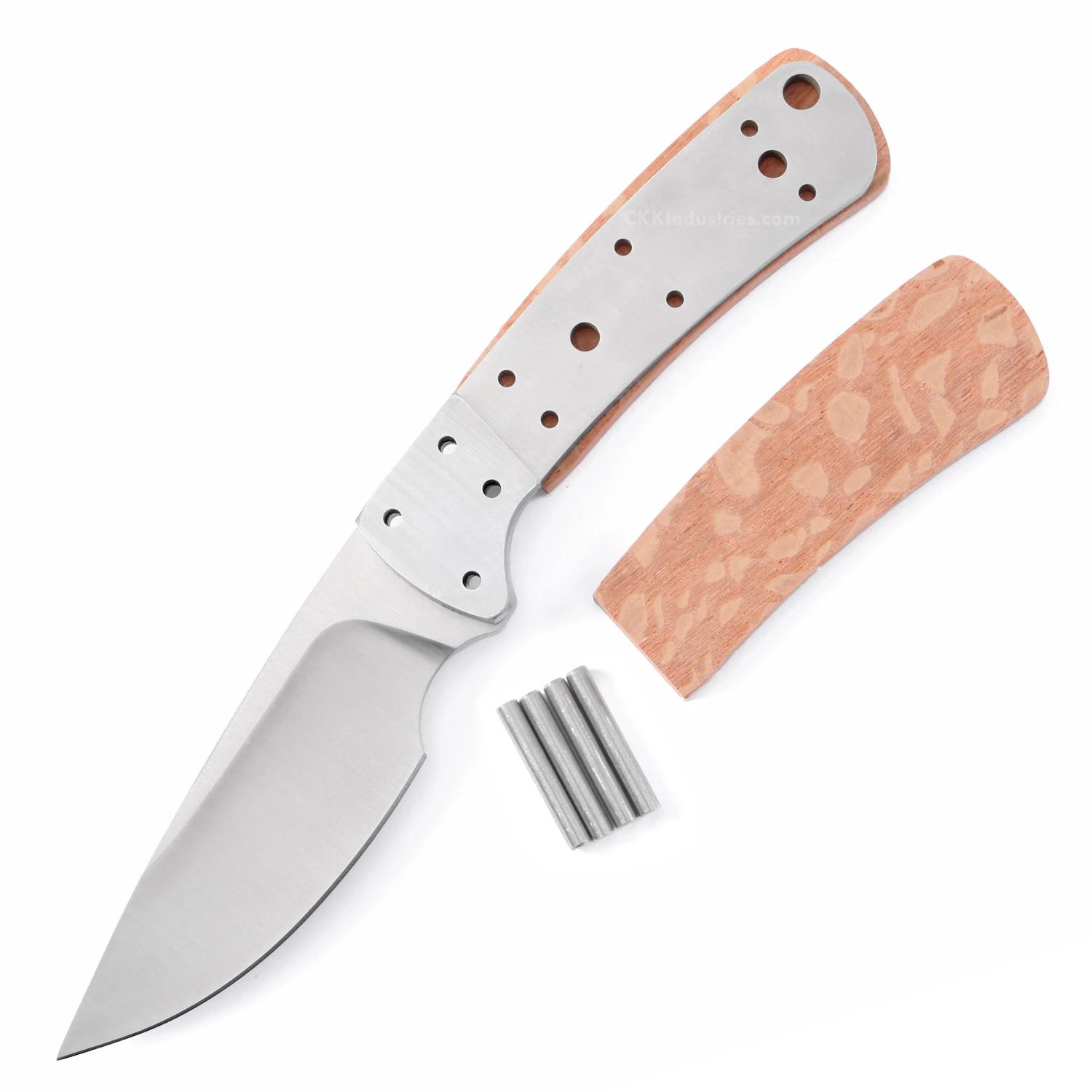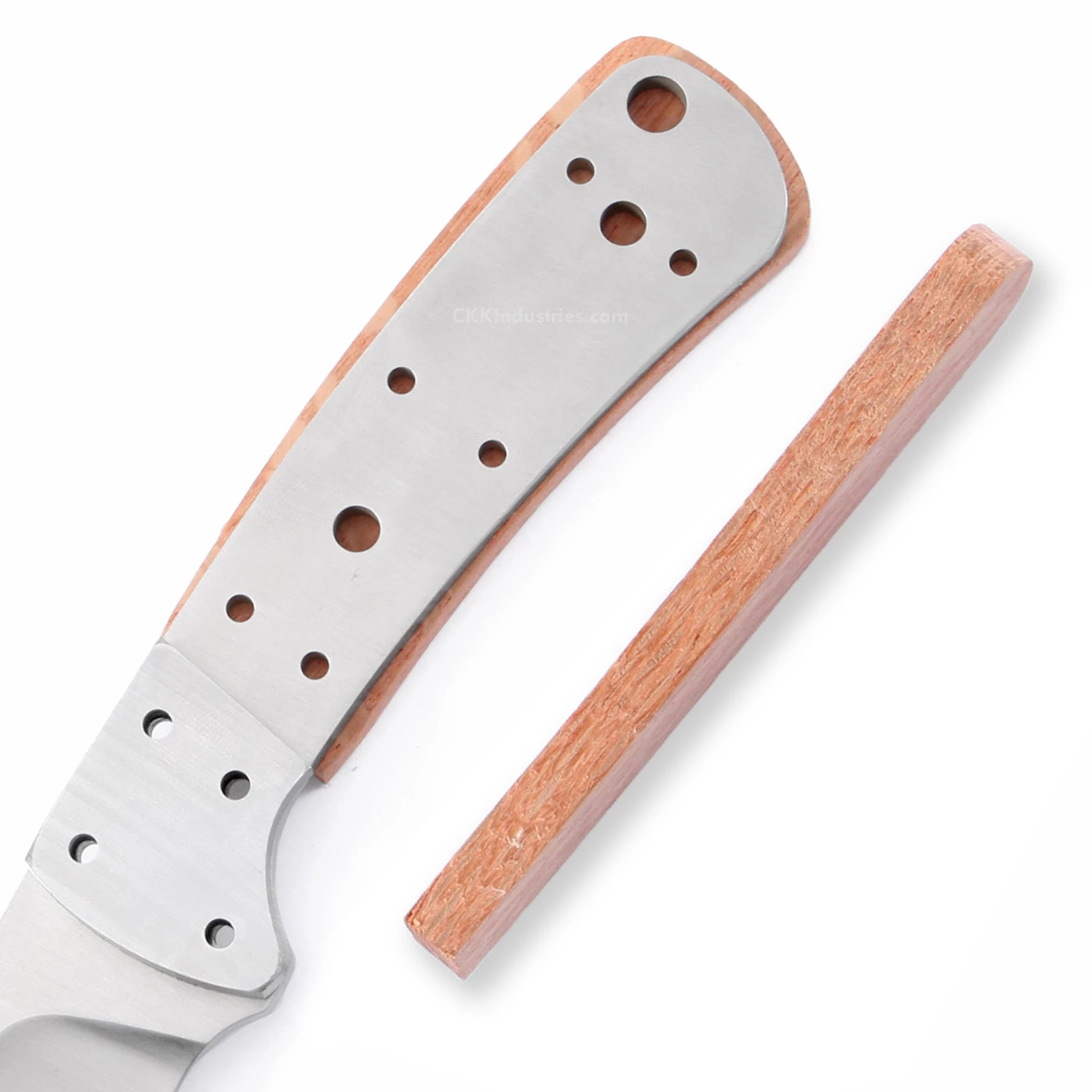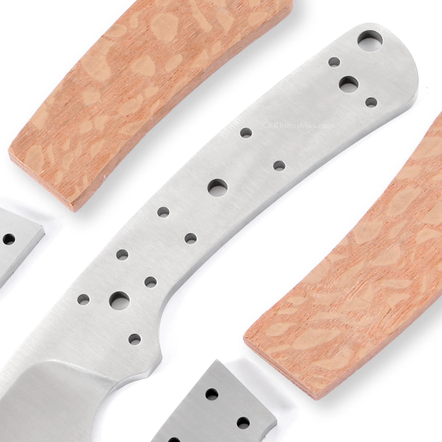 Our pre-machined knife handle scales are slightly thicker and larger in diameter than the handle tang they are designed for. This allows for proper sanding, shaping and artistic embelishment. They are also undrilled to allow the builder precise placement control and to maximize fastening options. You can use standard pins, mosaic pins or a number of handle fastners. The choice is up to you. If you do not have a scroll saw to use for creating the required handle shape, or you just want to begin from an easier starting point, using these pre-machined scales will help you insure that your kit completion will be smooth and successful.