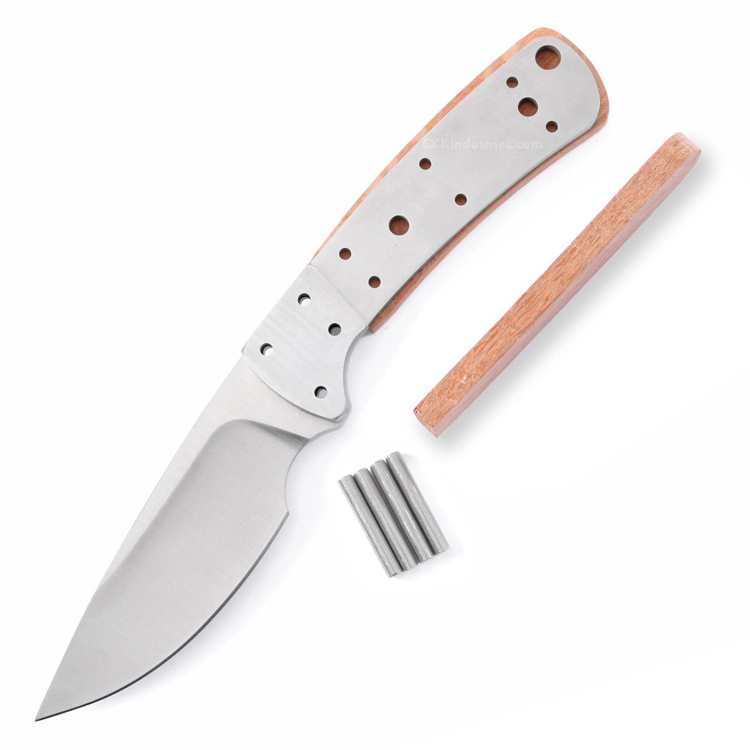 The Modern Skinner features a modern skinning blade design. This kit offers a number of finishing options having pre-drilled holes in the tang with all the hardware included. This version is the combo kit. It comes with blade, bolsters, pins, handle bolts and pre-machined Lacewood handle material. The Modern Skinner combo comes with virtually everything you need to build a knife you’ll be proud of for life.