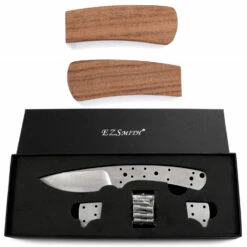 The Modern Skinner features a modern skinning blade design. This kit offers a number of finishing options having pre-drilled holes in the tang with all the hardware included. This version is the combo kit. It comes with blade, bolsters, pins, handle bolts and pre-machined walnut handle material. The Modern Skinner combo comes with virtually everything you need to build a knife you’ll be proud of for life.