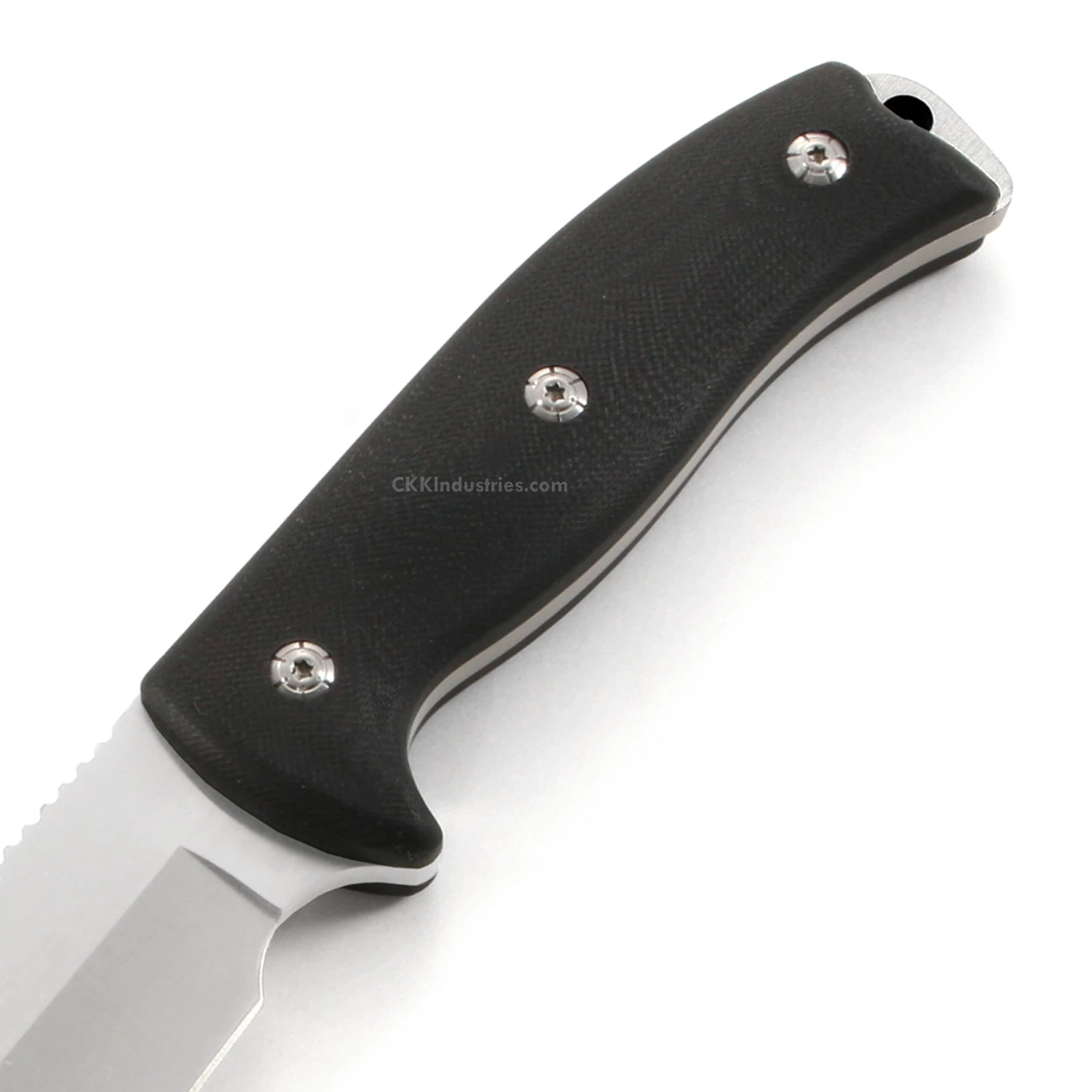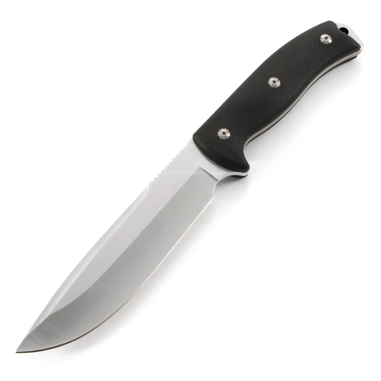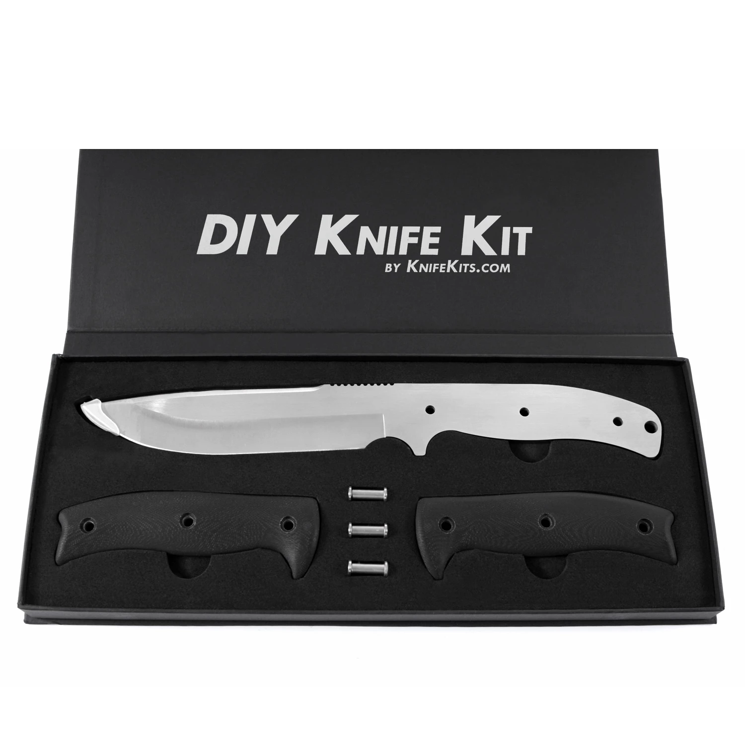 The Modern Tactical complete knife kit is 11-5/8 inches of overall muscle in an ultra-modern recurve fighter design. This tactical knife blank represents the latest in precision knife kit development. Complete with 3D milled black G10 handles, fitted handle fasteners and a .200″ thick full-tang satin finished clip point recurve fighter design, you’ll build no better, and certainly no easier high-quality knife kit that you can construct and use in minutes.