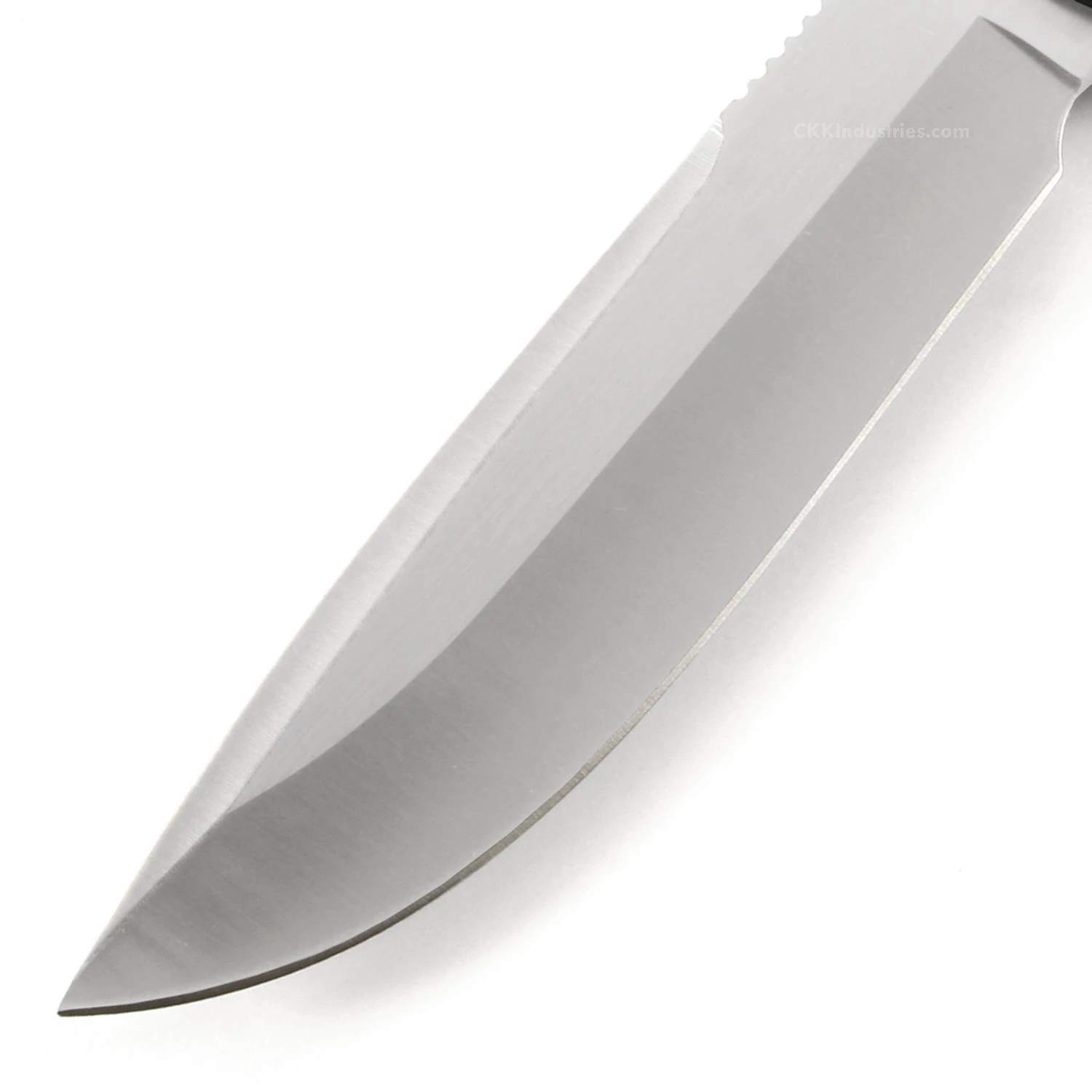 This complete knife kit model is very well designed and is expertly constructed. It can be built as-is, with supplied handles, or can be customized with custom handles, grind modifications, etc. The sky is the limit with this design and imagination.