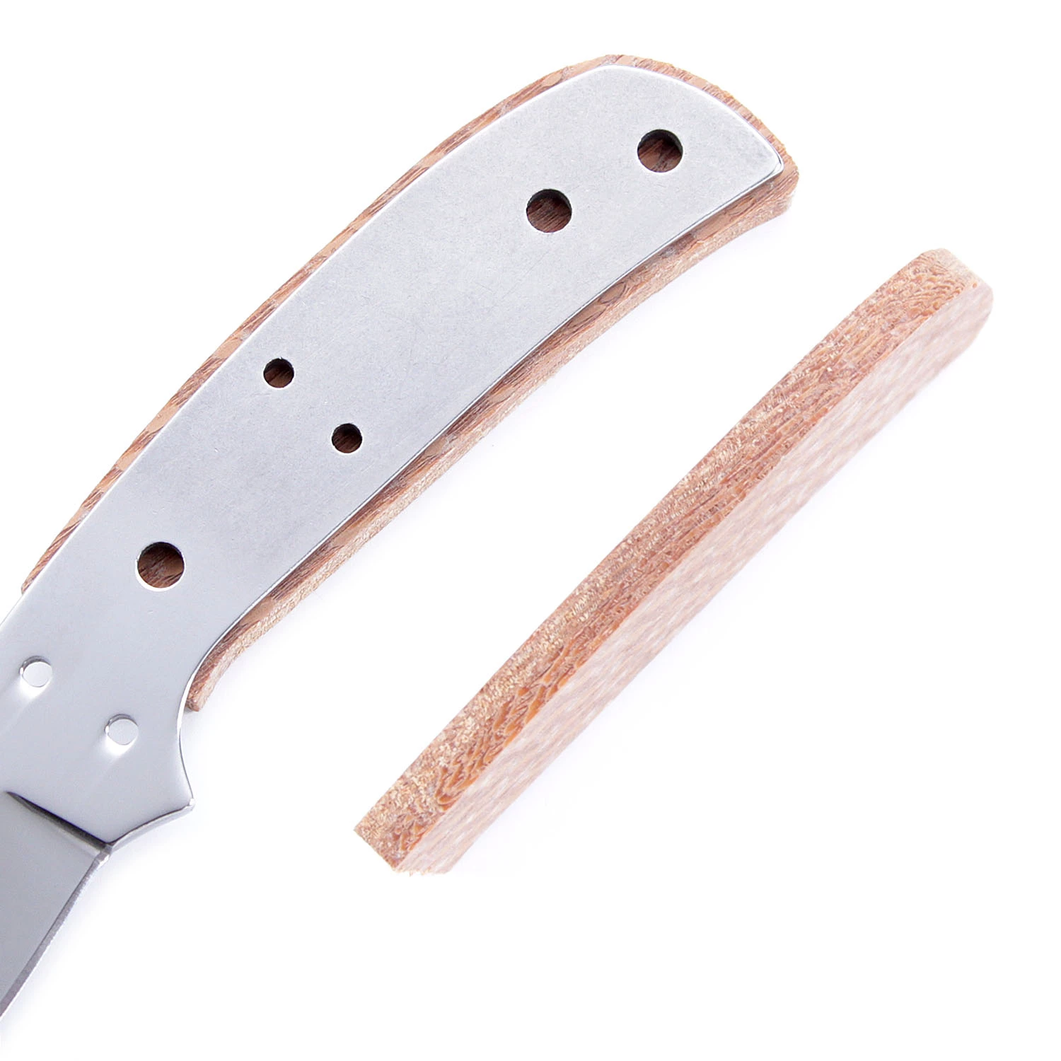 The Oregon Skinner is hollow-ground and mirror-polished. It comes standard with stainless steel bolsters and bolster pins. This is a great design for a working skinner and a really fun project to build. This version of the Oregon Skinner is the combo kit. It comes with the Oregon Skinner blade plus pre-machined Lacewood handle scales and stainless steel pinstock to simplify the completion process. This is a great project blade for a weekend knife making session. Spend some quality workshop time with this skinning knife kit and enjoy the fun of custom knife making and customization.