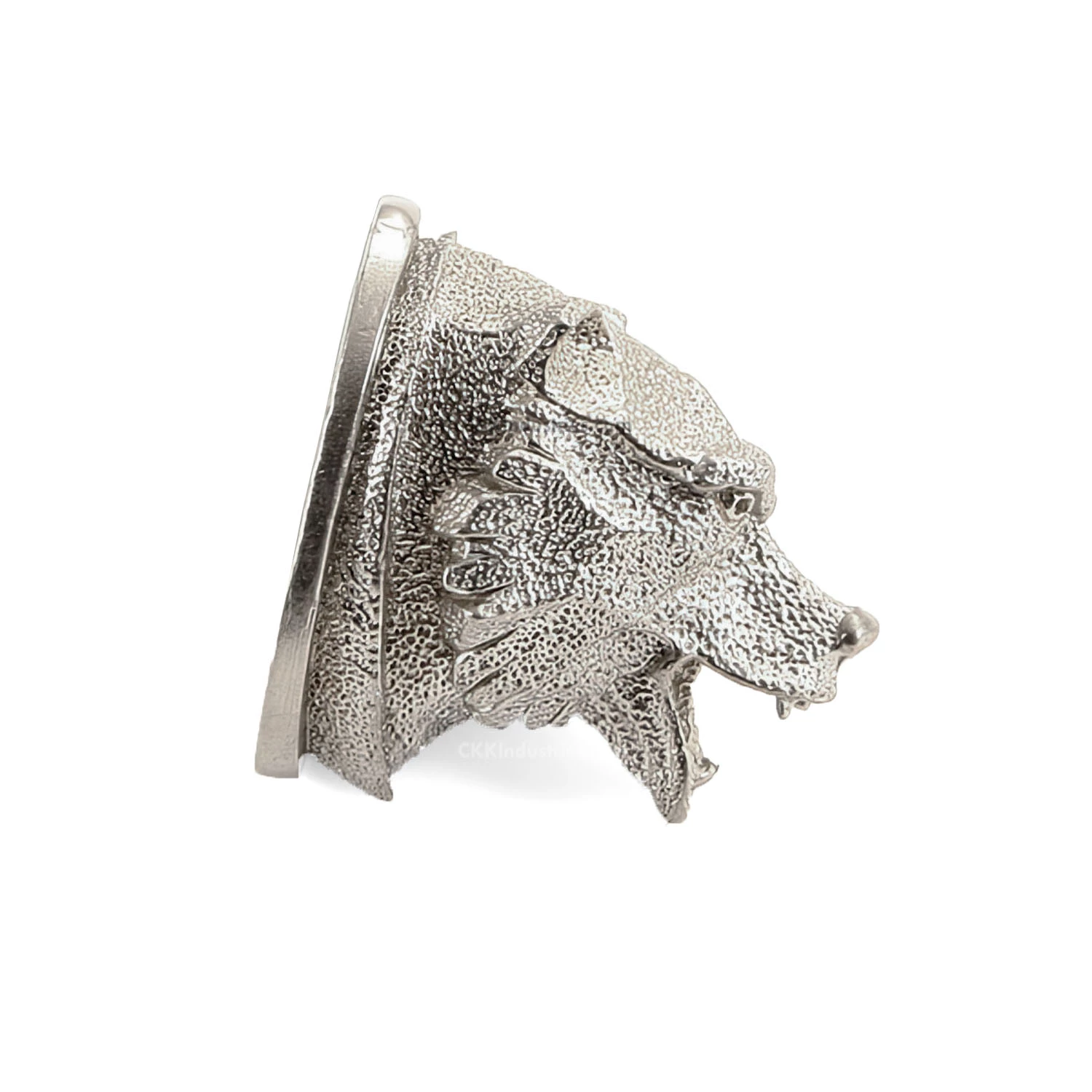 This is a decorative nickel silver pommel used to close (and hold) the handle on a fixed blade knife. This model features a fully satin-engraved bear’s head with open jaw. This buttcap can be adapted to work with most hidden tang handle designs. Additional material has been left on bottom and outer edge for finish-sanding and shaping. These are very high quality and will professionally dress-out any custom knife handle.