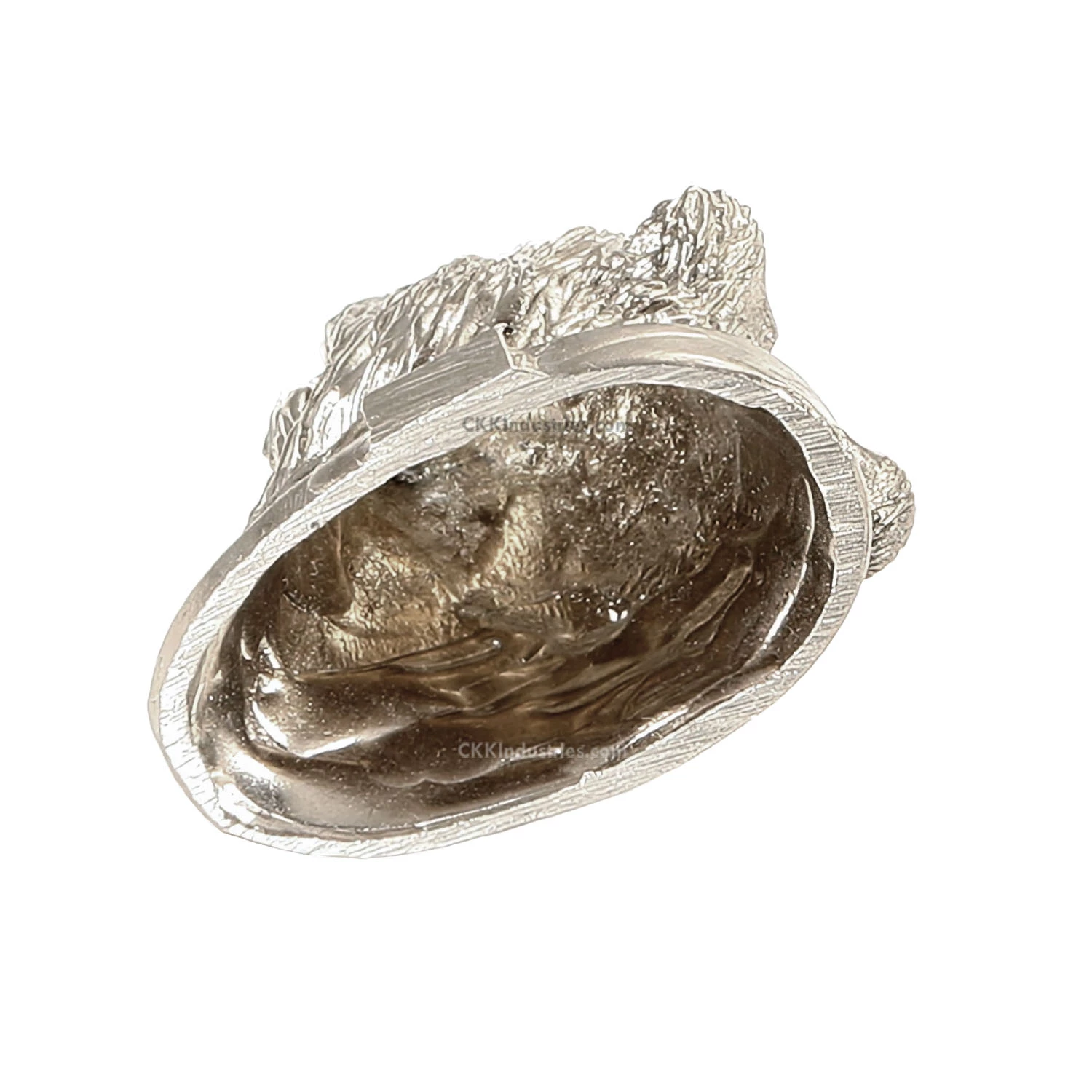 This is a decorative nickel silver pommel used to close (and hold) the handle on a fixed blade knife. This model features a fully engraved bear’s head. This buttcap can be adapted to work with most hidden tang handle designs. Additional material has been left on bottom and outer edge for finish-sanding and shaping. These are very high quality and will professionally dress-out any custom knife handle.