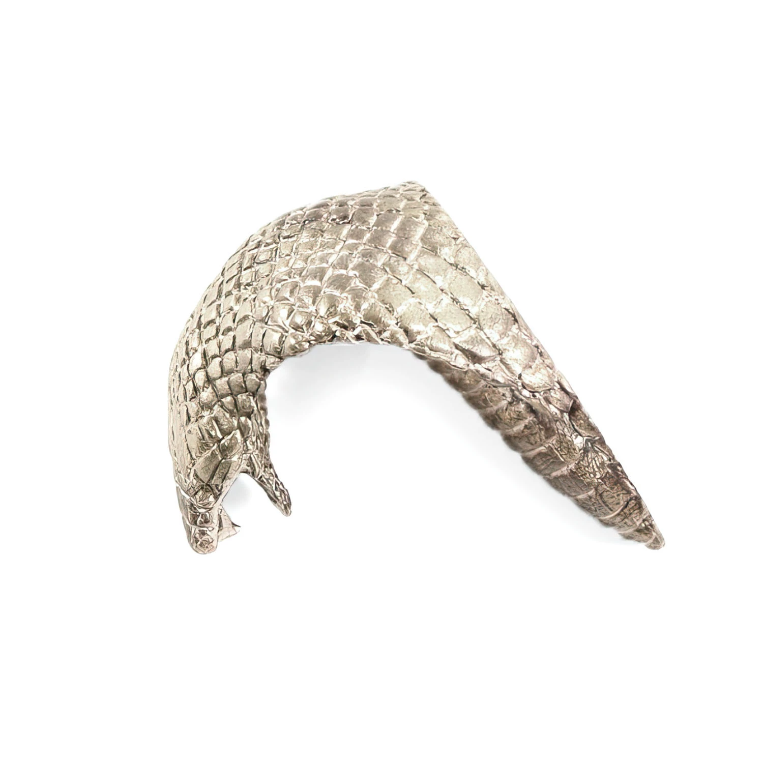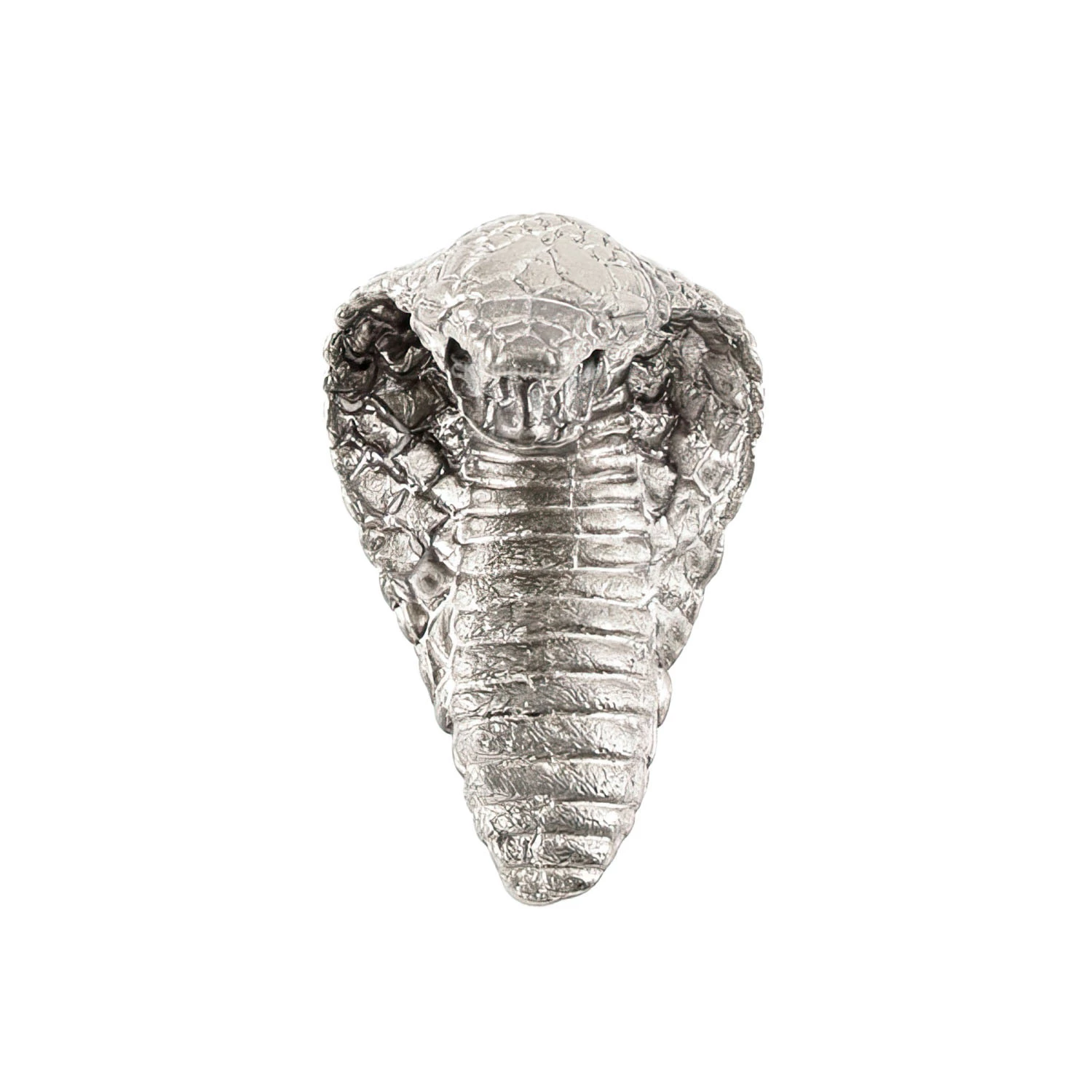 This is a decorative nickel silver pommel used to close (and hold) the handle on a fixed blade knife. This model features a Cobra head. This buttcap can be adapted to work with most hidden tang handle designs. Additional material has been left on bottom and outer edge for finish-sanding and shaping. These are very high quality and will professionally dress-out any custom knife handle.