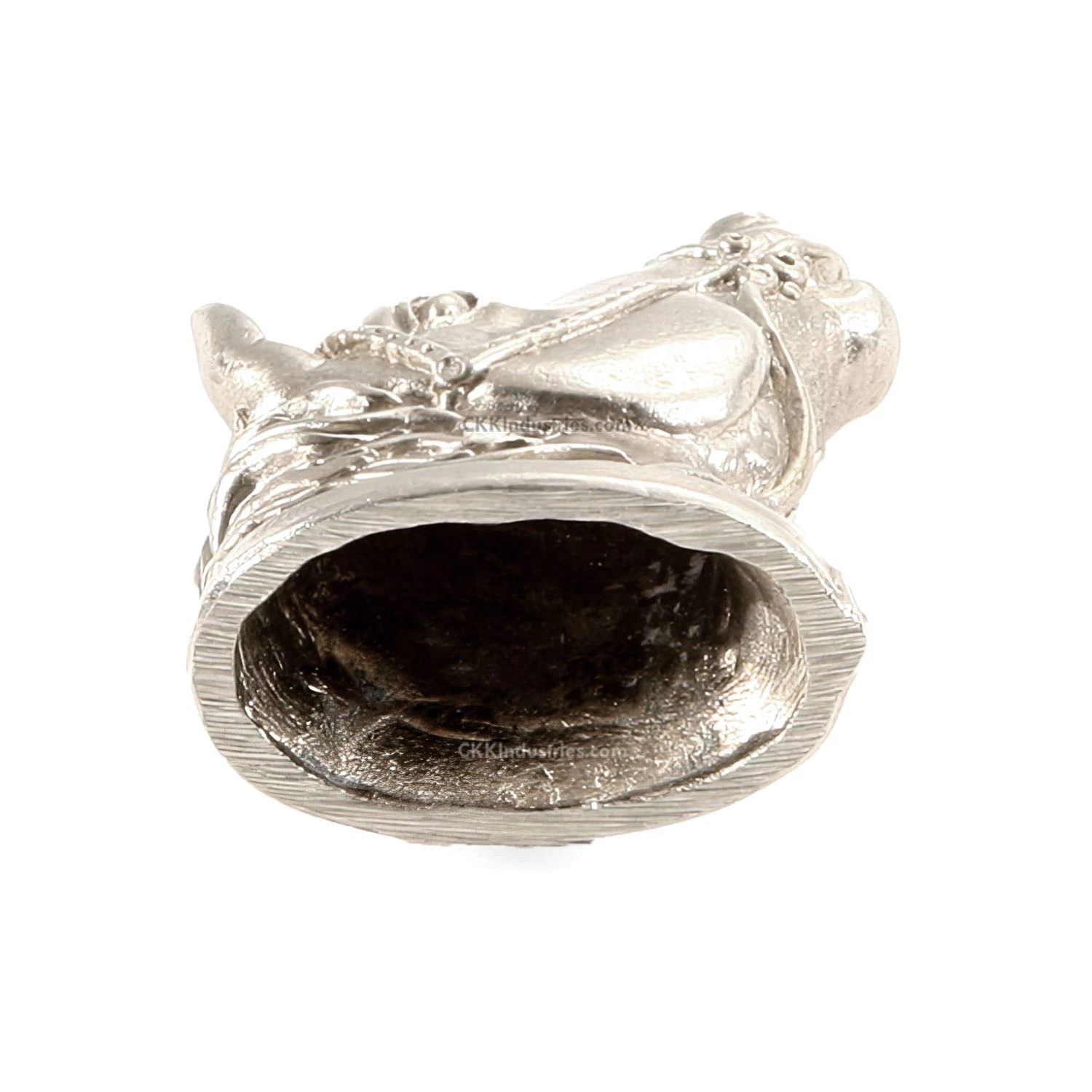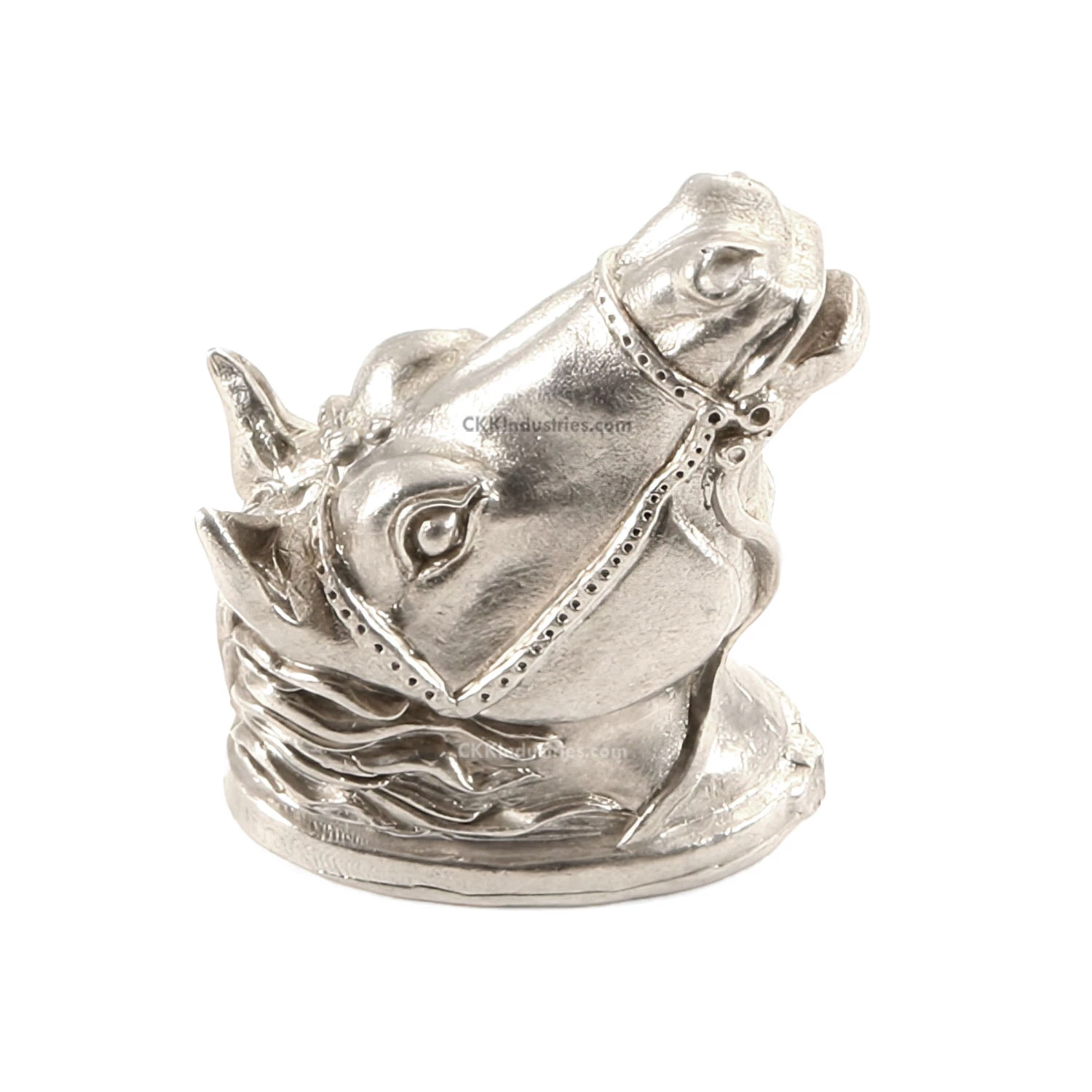 This is a decorative nickel silver pommel used to close (and hold) the handle on a fixed blade knife. This model features a fully engraved horse head. This buttcap can be adapted to work with most hidden tang handle designs. Additional material has been left on bottom and outer edge for finish-sanding and shaping. These are very high quality and will professionally dress-out any custom knife handle.