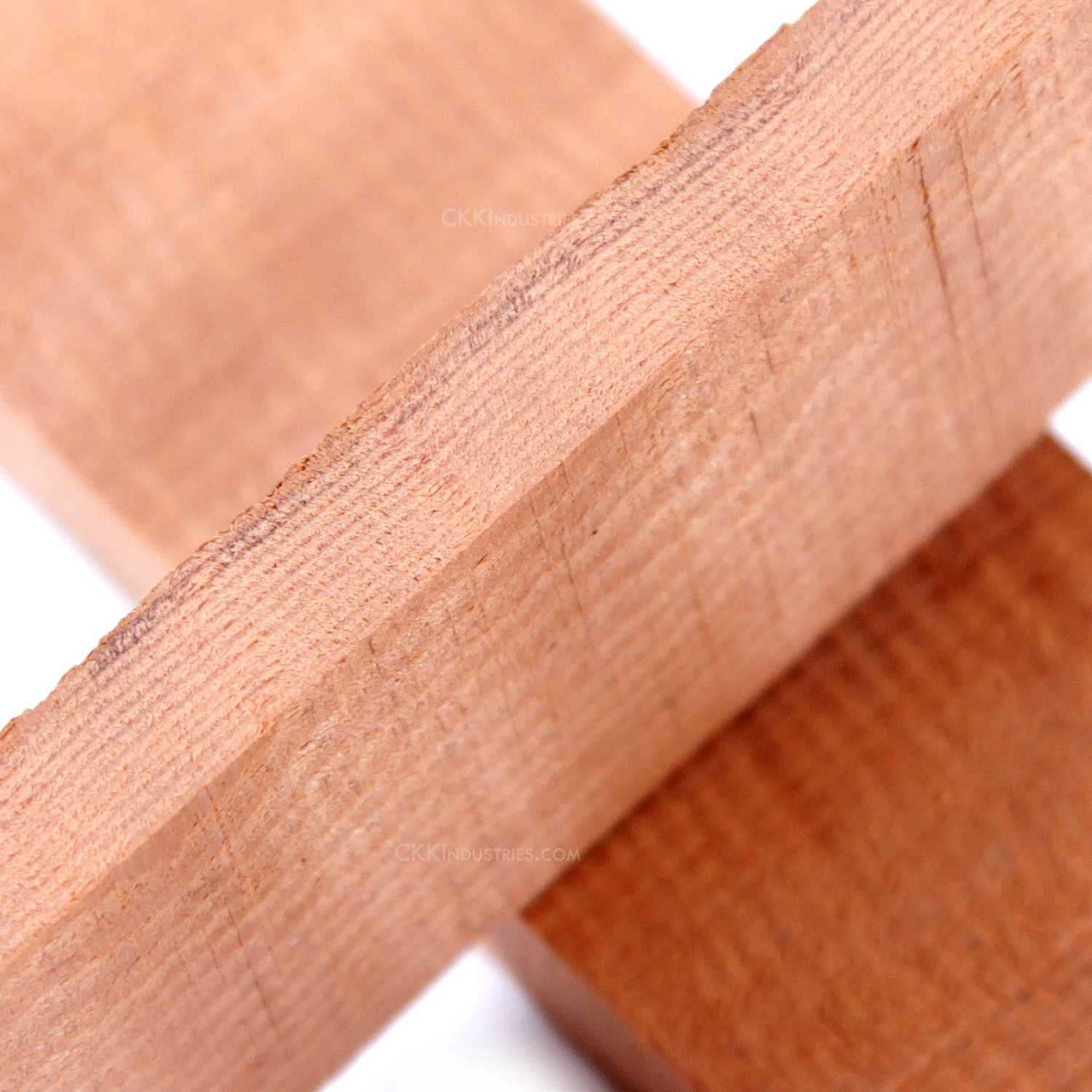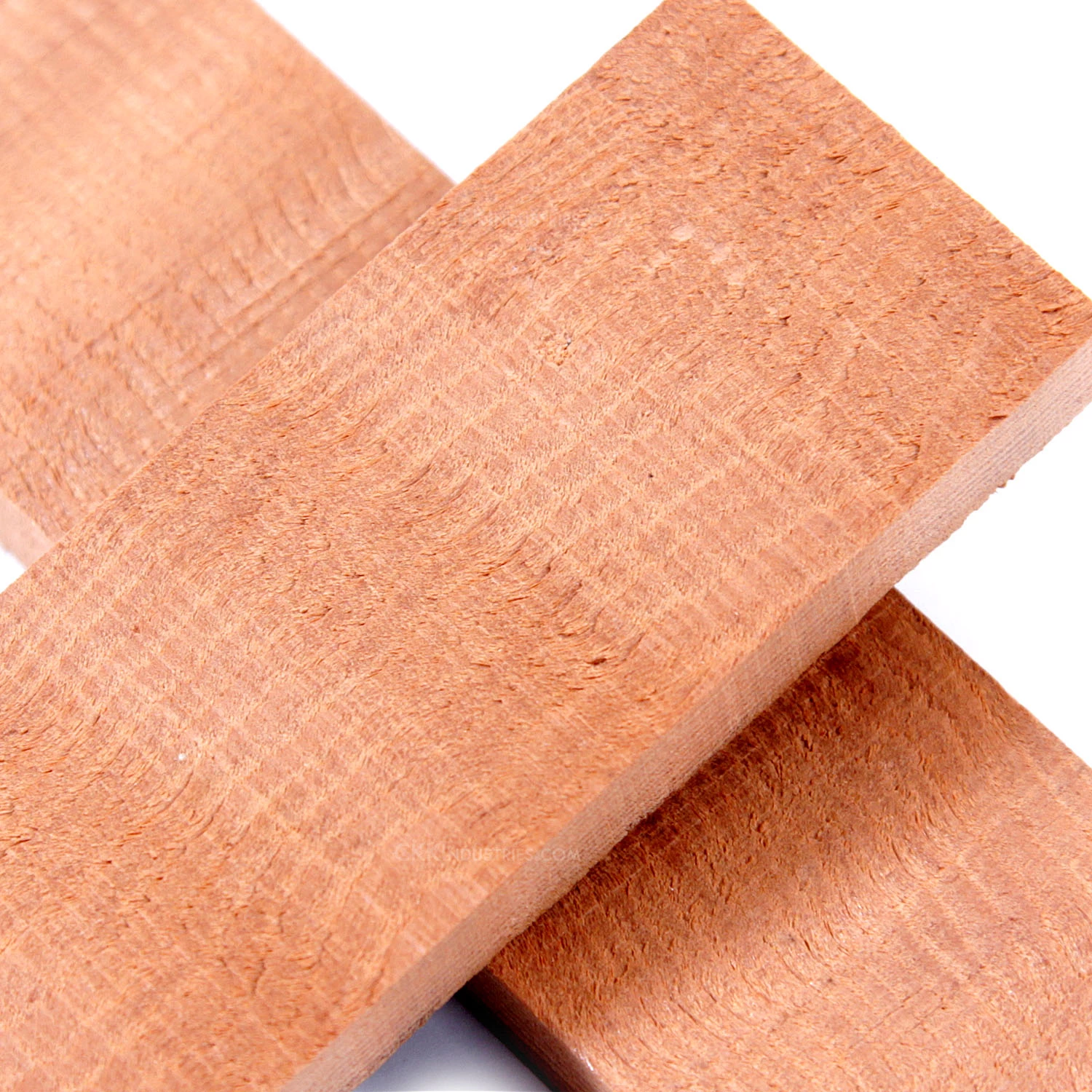 Redwood as a handle material is very durable and offers many application uses. It is lightweight and easy to sand, shape, and form, but has an excellent strength-to-weight ratio and doesn’t fall victim to any major shrinkage. Curly Redwood comes from the most exotic areas of the tree’s grain. It is very rare to have curly grain running fully through a redwood which is why board footage is more rare. With proper shaping, sanding, and finishing this material will compete with any wood on presentation. Our curly redwood handle scale sets are book-matched and individually bagged.