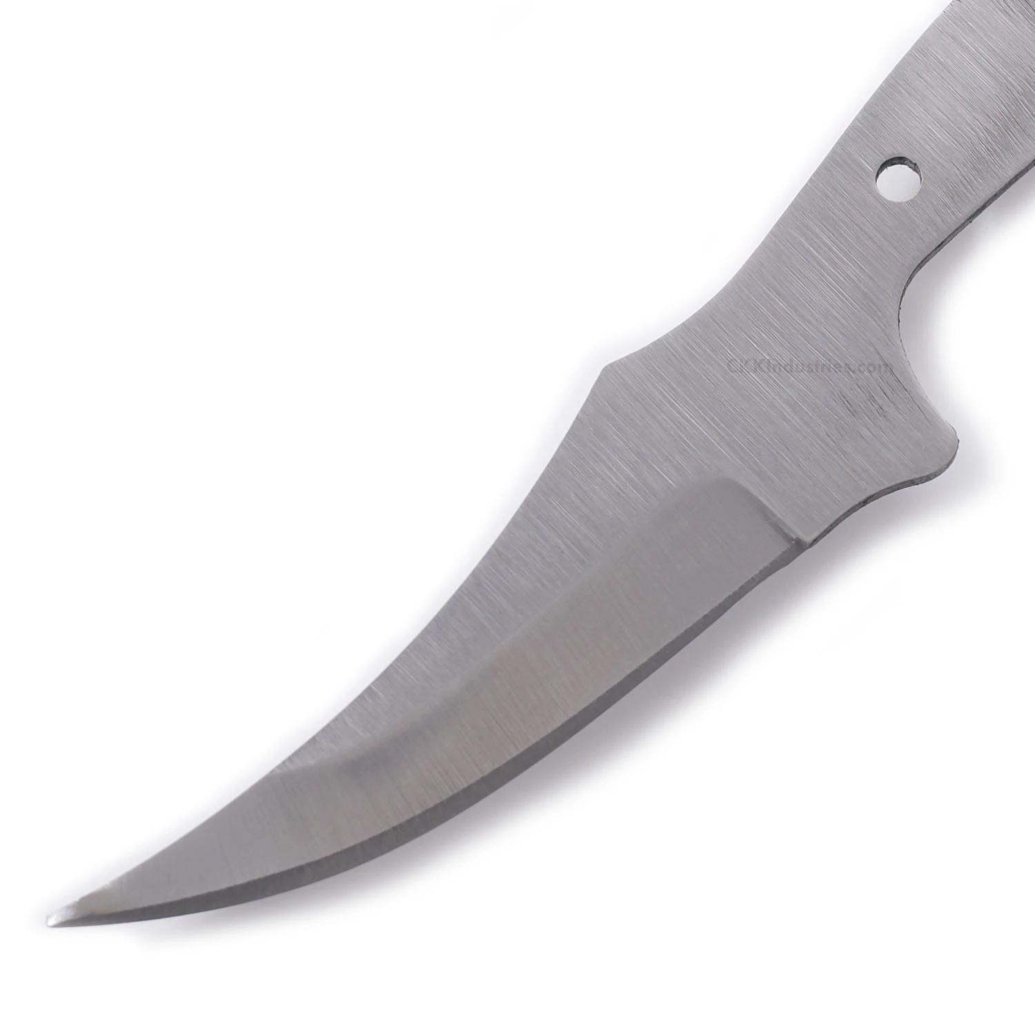 This high carbon trailing point knife kit design is called the “Saddle Skinner”. It is a USA Made carbon steel high carbon fixed blade knife blank that is hollow-ground and ready to build. This skinner blade blank model will make a fantastic skinner or hunter. This would also make a great pick as a collectible gift project.