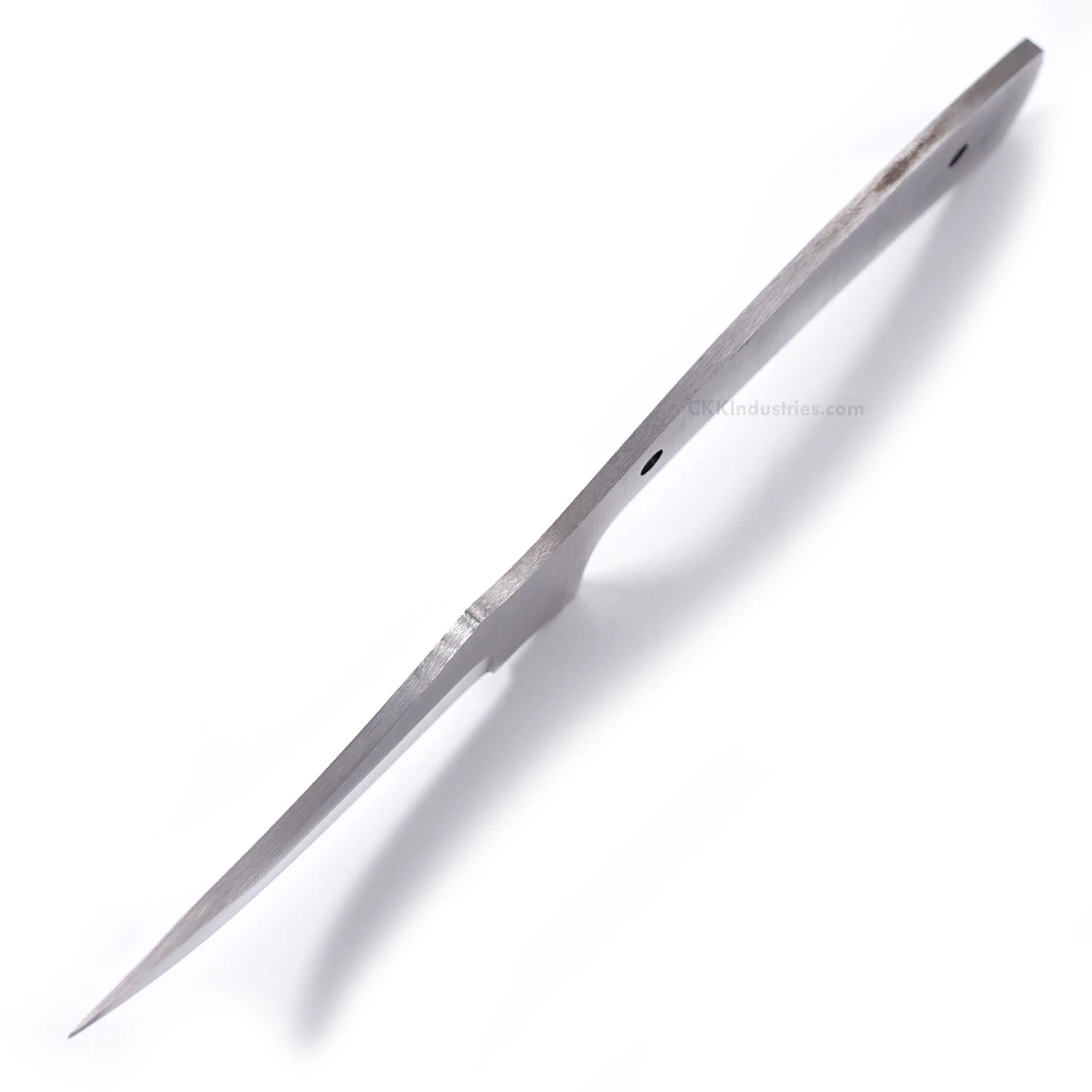 This high carbon skinning knife blank design features (2) .156″ through holes for handle construction. The holes can be easily modified to work with larger pinstock or threaded fasteners. Please see our drills and taps sections for more options.