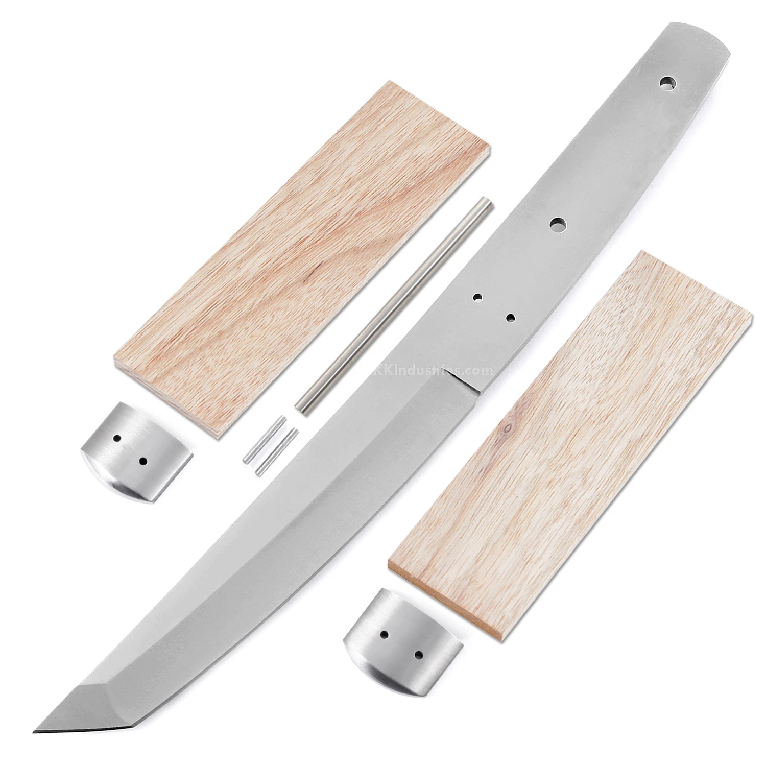 Japanese Samurai first used a Sensei-styled tanto knife design as a slashing and stabbing weapon. The Sensei knife kit’s blade design is 11.0 inches in overall length, 0.187 inches in thickness, and features a 6.5 inch blade length. The blade is hollow ground and features a 1.125 inch width. The Sensei’s hidden tang handle features (2) 0.187 inch through-holes for handle construction (stainless steel pinstock included). It also comes with matching 416 stainless steel bolsters and bolster-pins.