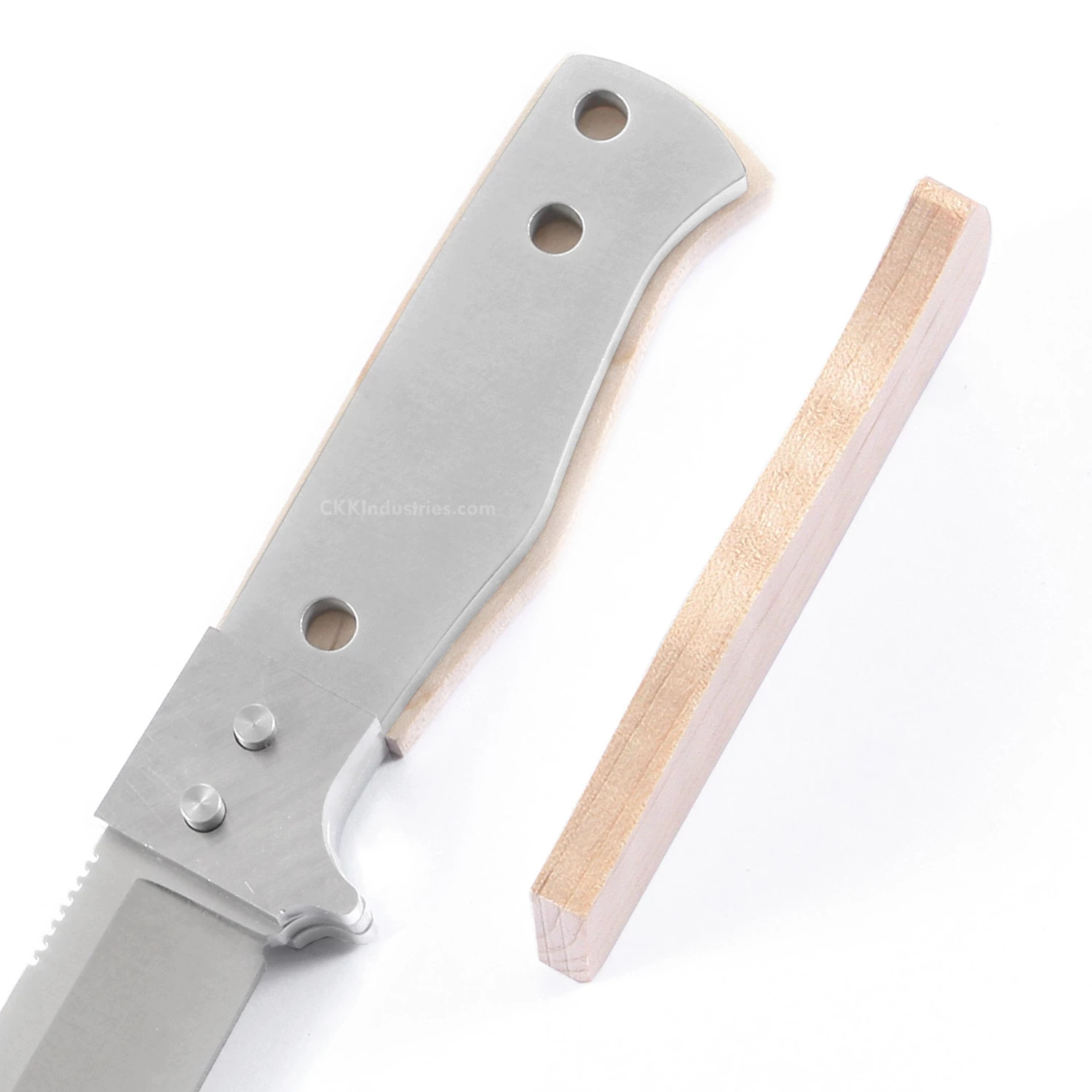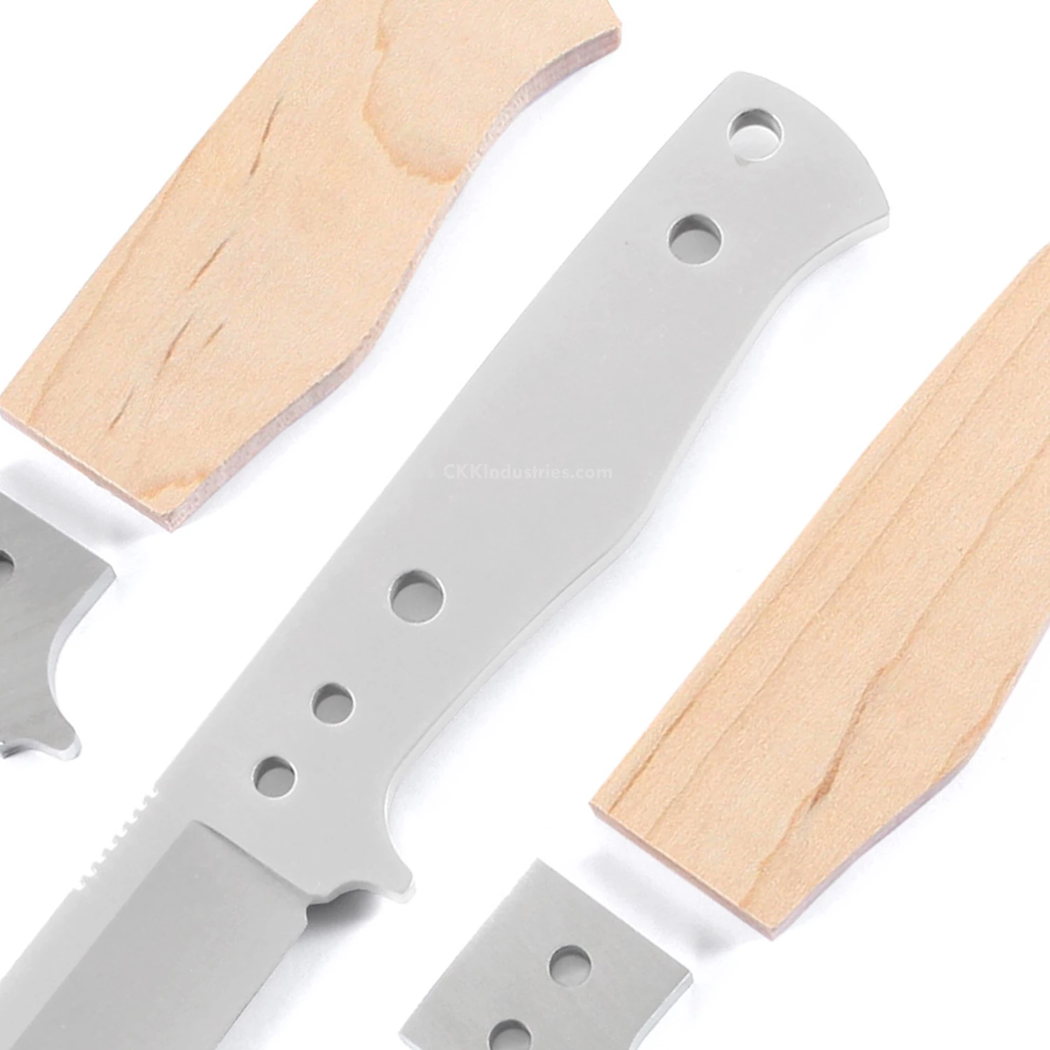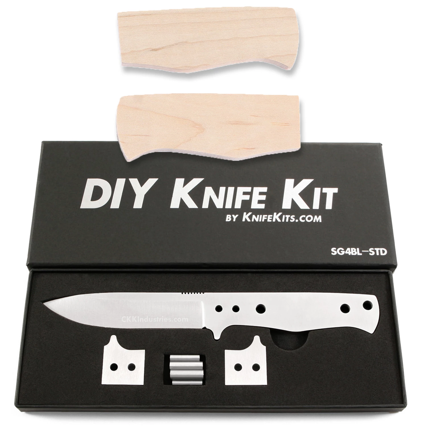 The grind lines on this fixed blade knife blank are very sharp and extremely crisp. With a 600 grit satin finish on the blade, the SG4 makes a great starting point for a superior quality finished piece. This version is the combo kit. It comes with all of the basic SG4 kit parts, plus pre-machined Curly Maple handle scales to simplify the completion process. Add a touch of proper finishing and create a fabulous knife that you’ll be proud to own and carry.