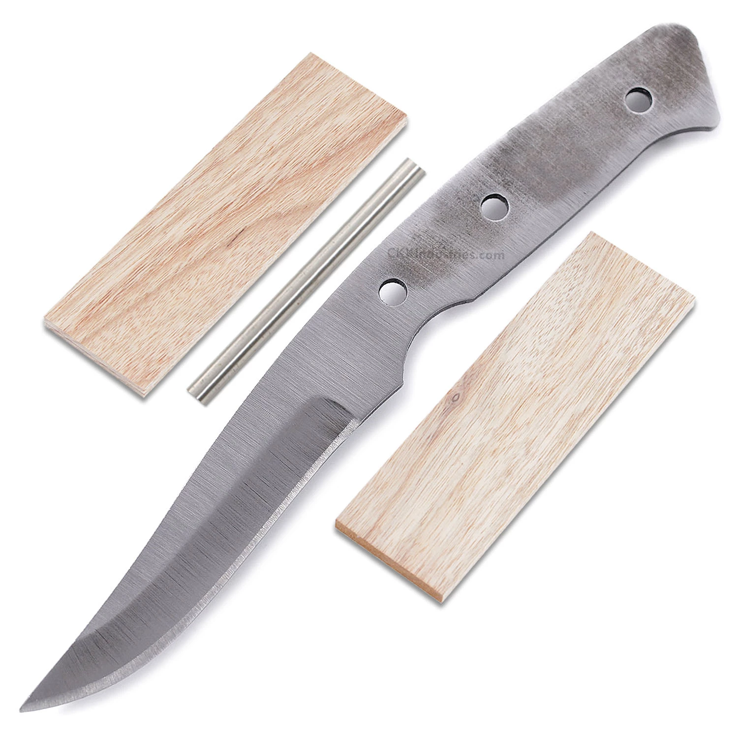 This carry-sized high carbon blade blank design is called the “Side Spur”. It is a USA Made carbon steel high carbon fixed blade knife blank that is hollow-ground and ready to build. This high carbon utility knife making kit makes a fantastic personal carry knife. The Side Spur knife kit has a blade length of 3.50 inches and an overall length of 8.125 inches. Ground on both sides, the blade is 7/8 inches wide. This high carbon blade blank features (3) .250 inch through-holes for handle construction (stainless steel pinstock included). The tang holes can be modified with ease to work with larger pinstock, or with threaded fasteners. Please see our drills and taps sections for more options.