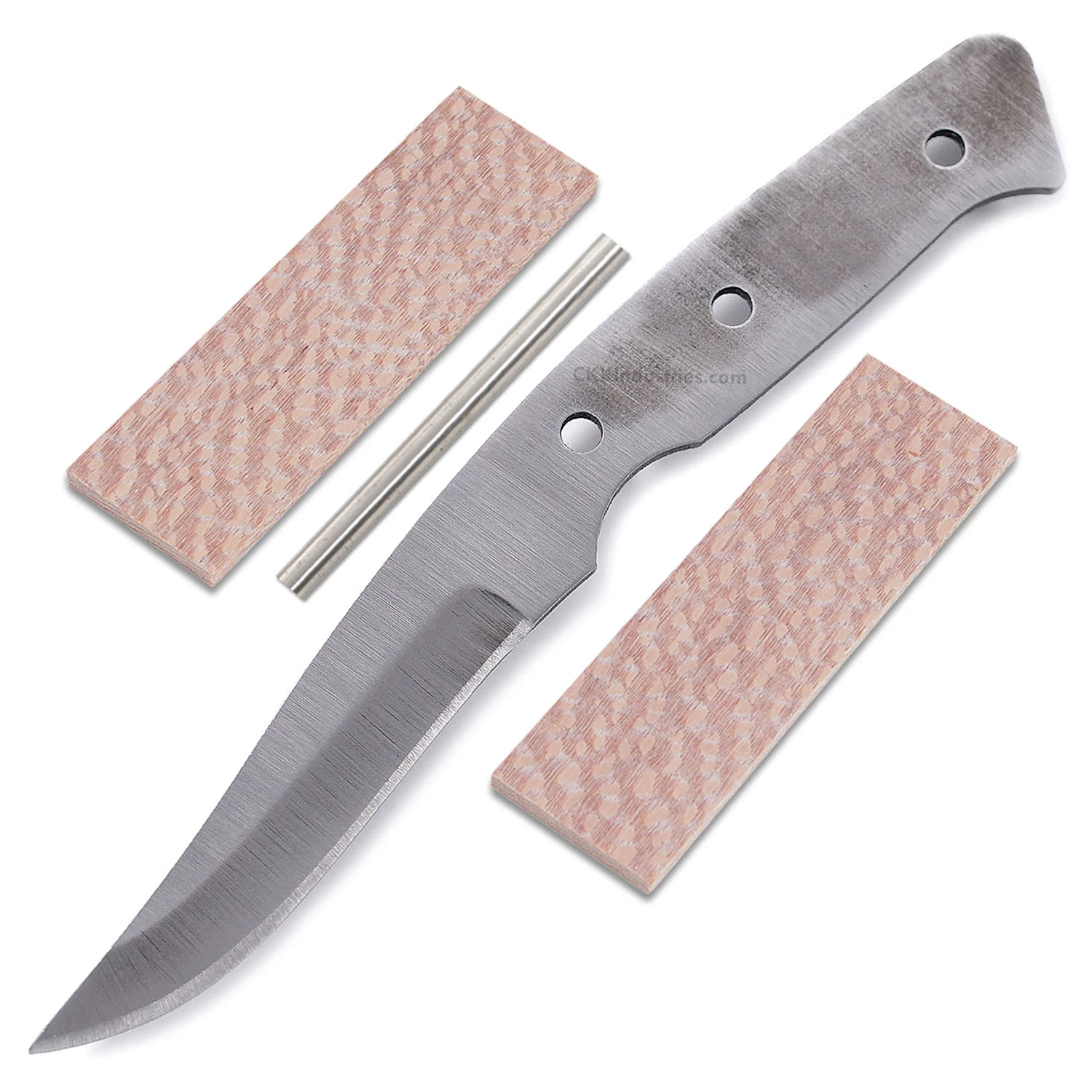 This version of the Side Spur is the combo kit. It comes with the Side Spur blade plus Lacewood handle scales and stainless steel pinstock to simplify the completion process. This is a great project blade for a weekend knife making session. Spend some quality workshop time with this skinning knife kit and enjoy the fun of custom knife making and customization.