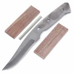 This version of the Side Spur is the combo kit. It comes with the Side Spur blade plus Walnut handle scales and stainless steel pinstock to simplify the completion process. This is a great project blade for a weekend knife making session. Spend some quality workshop time with this skinning knife kit and enjoy the fun of custom knife making and customization.