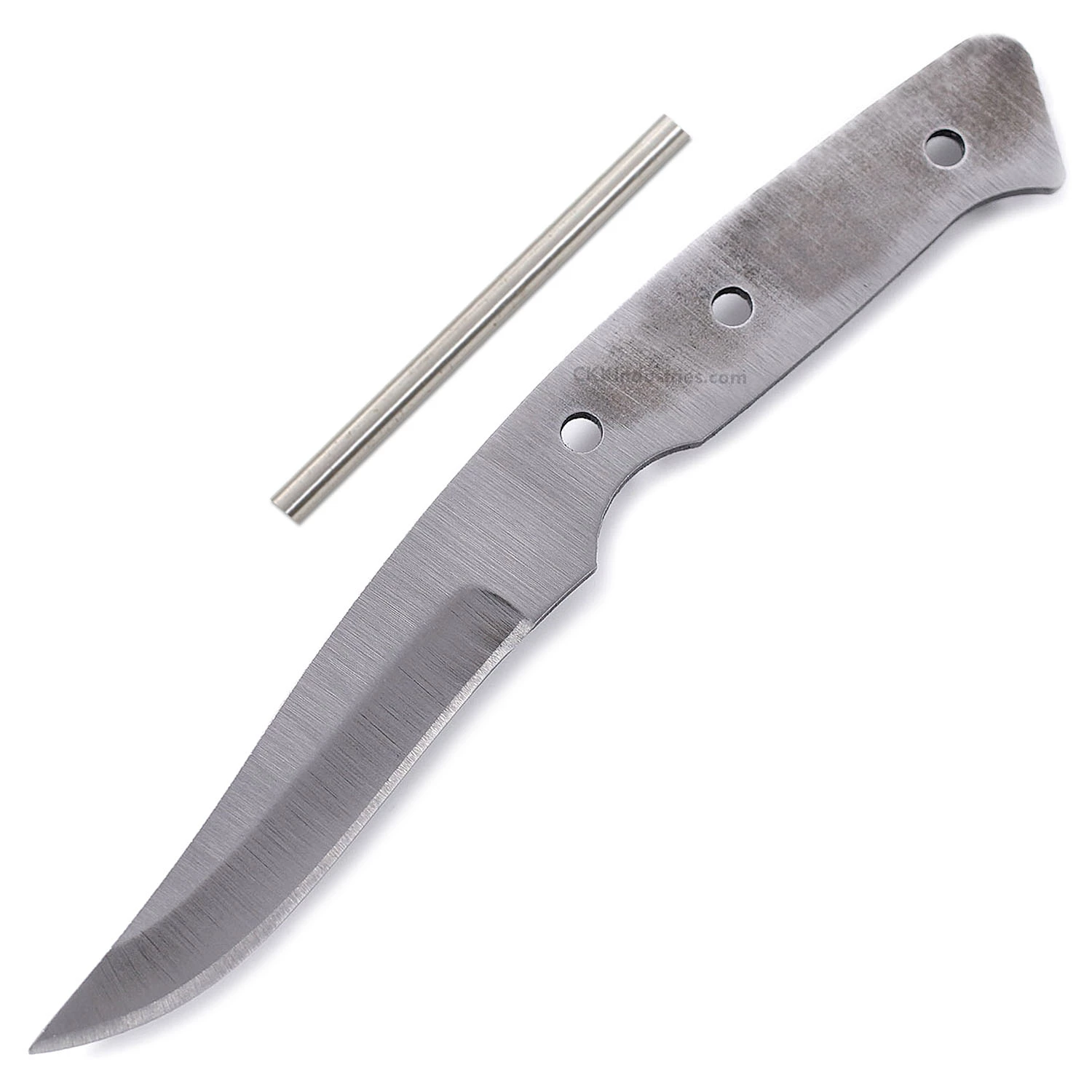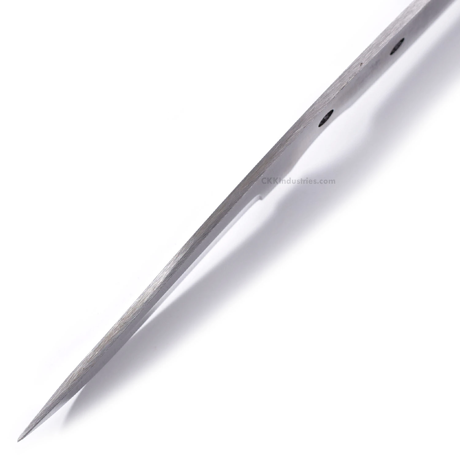 This carry-sized high carbon blade blank design is called the “Side Spur”. It is a USA Made carbon steel high carbon fixed blade knife blank that is hollow-ground and ready to build. This high carbon utility knife making kit makes a fantastic personal carry knife. The Side Spur knife kit has a blade length of 3.50 inches and an overall length of 8.125 inches. Ground on both sides, the blade is 7/8 inches wide. This high carbon blade blank features (3) .250 inch through-holes for handle construction (stainless steel pinstock included). The tang holes can be modified with ease to work with larger pinstock, or with threaded fasteners. Please see our drills and taps sections for more options.