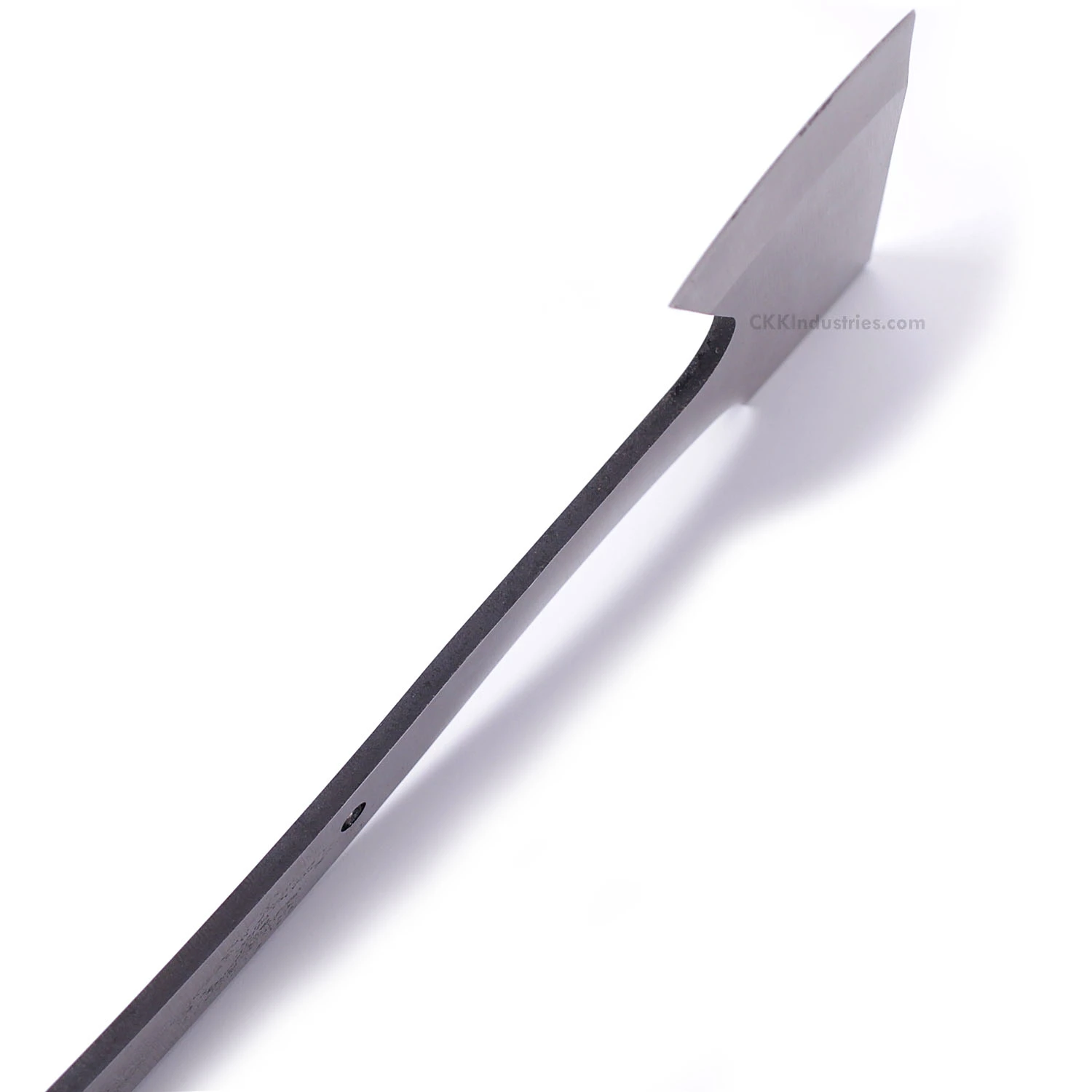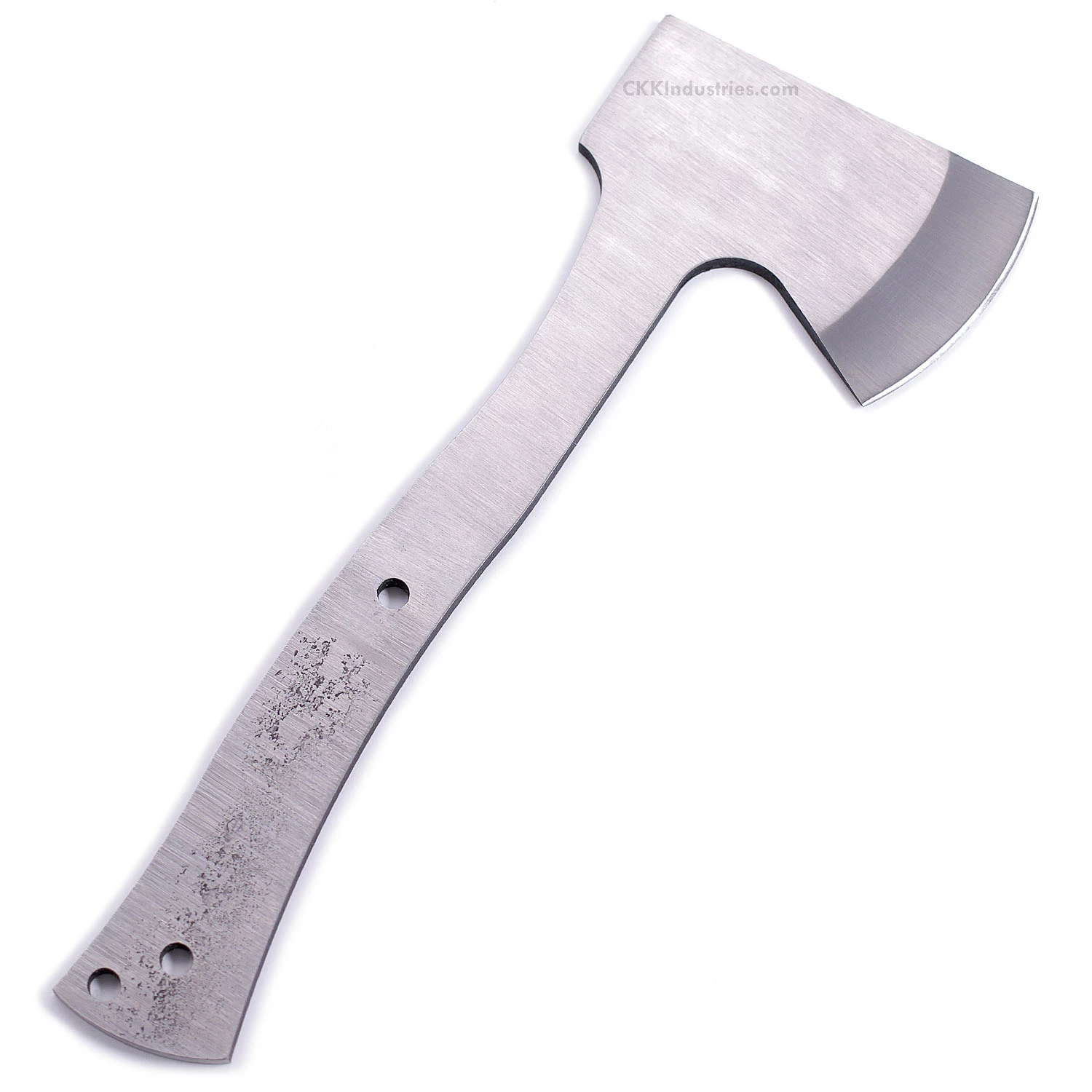 This high carbon hatchet blank model features (2) .250″ through holes for handle construction with a .250″ thong hole for an optional lanyard. The tang holes can be modified with ease to work with larger pinstock, or with threaded fasteners. Please see our drills and taps sections for more options.