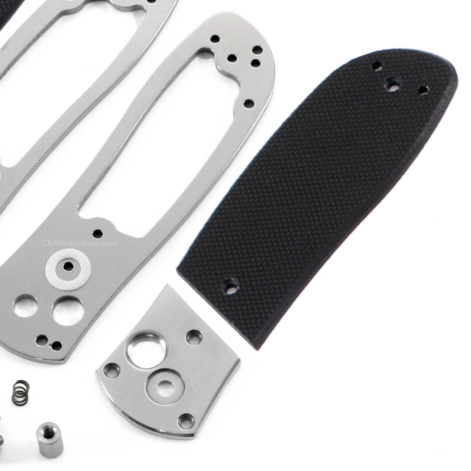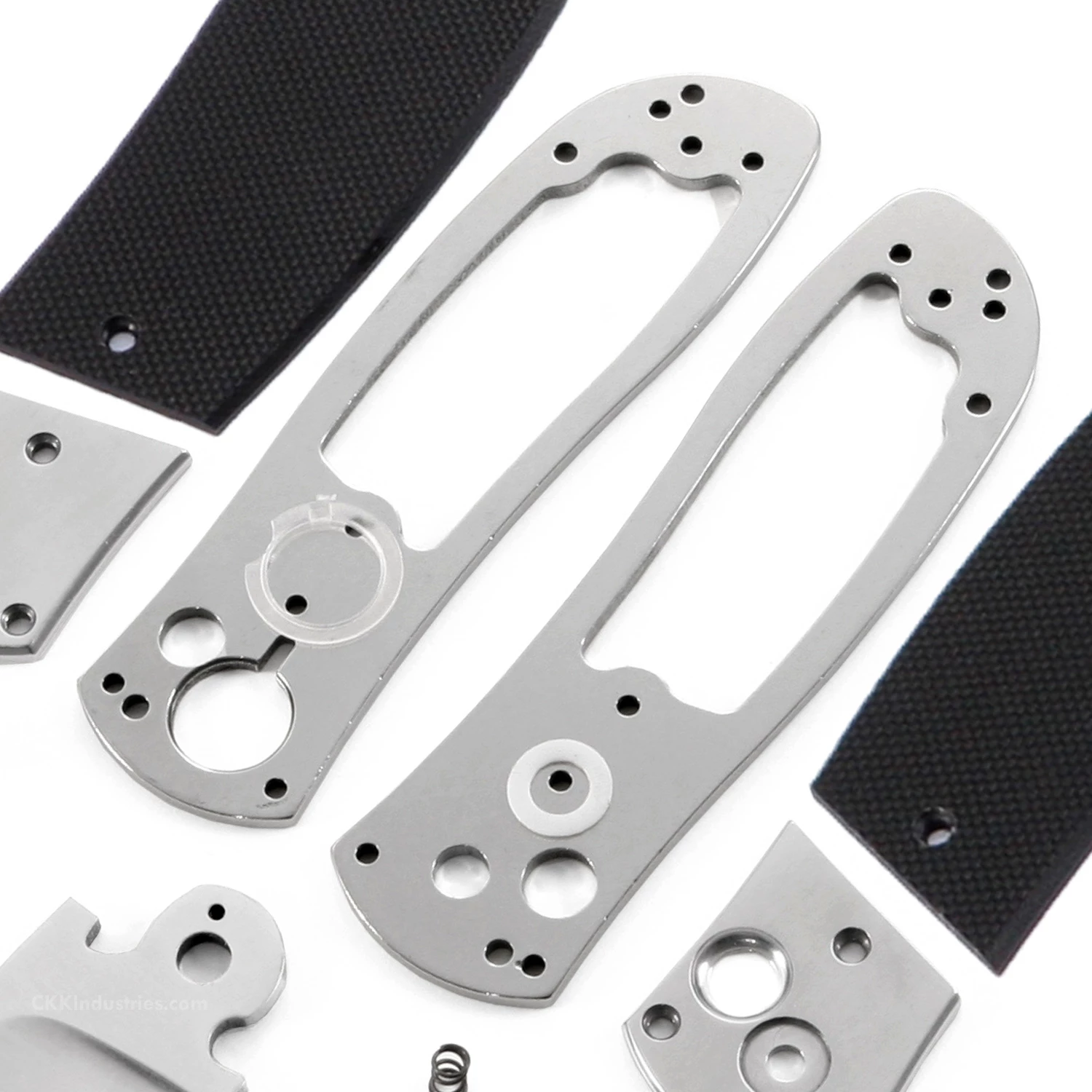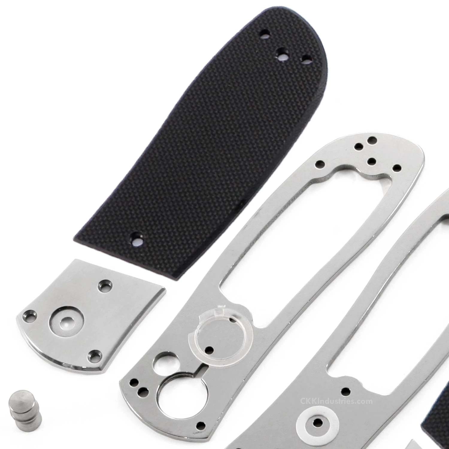 This version is the parts kit with Textured Black G10 handle scales. All parts with this model come gift boxed with a natural satin finished blade, bolsters, liners, and assembly parts. The handles are pre-machined and are ready for assembly.