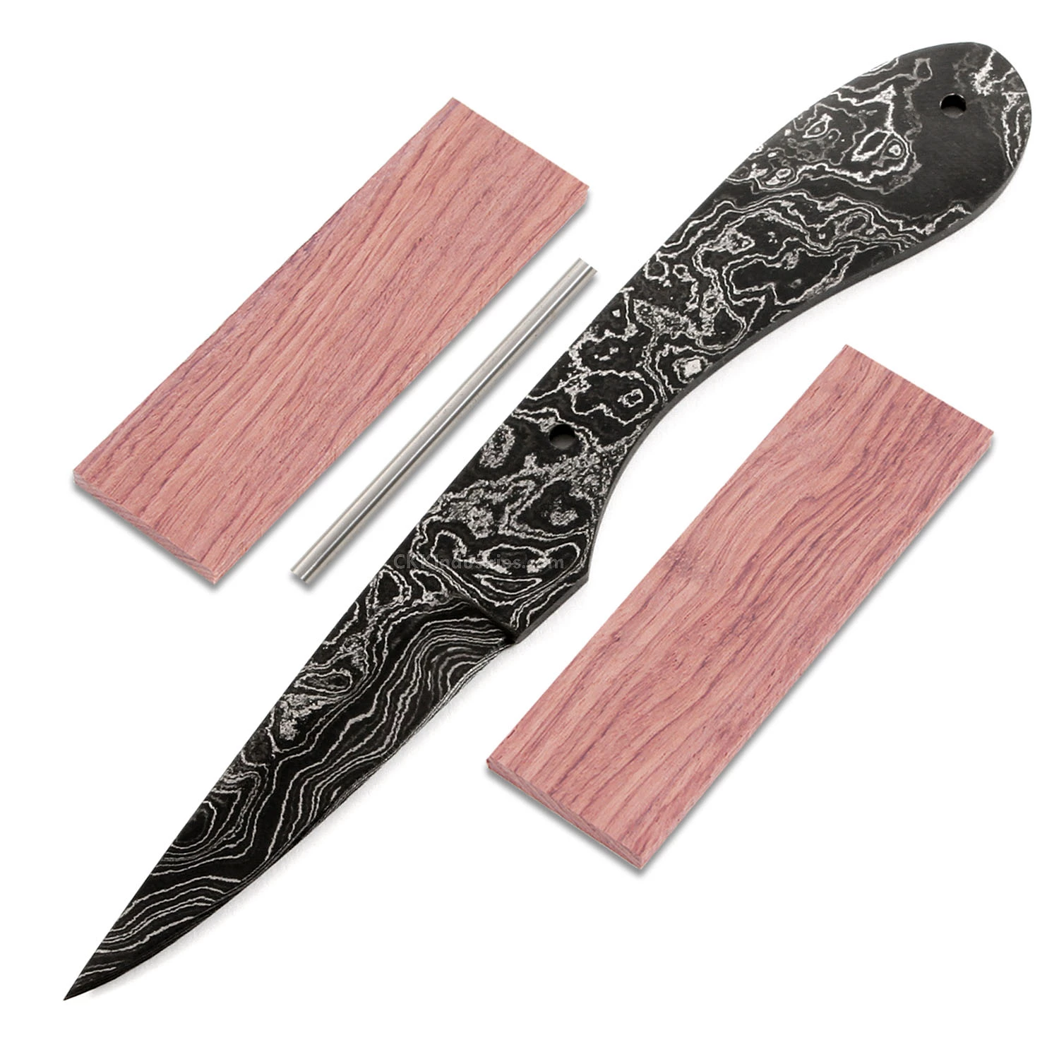 This version of the Tail Fin is the combo kit. It comes with the Tail Fin blade plus Bubinga handle scales and stainless steel pinstock to simplify the completion process. This is a great project for a weekend knife making session. Spend some quality workshop time with this knife kit and enjoy the fun of custom knife making and customization.