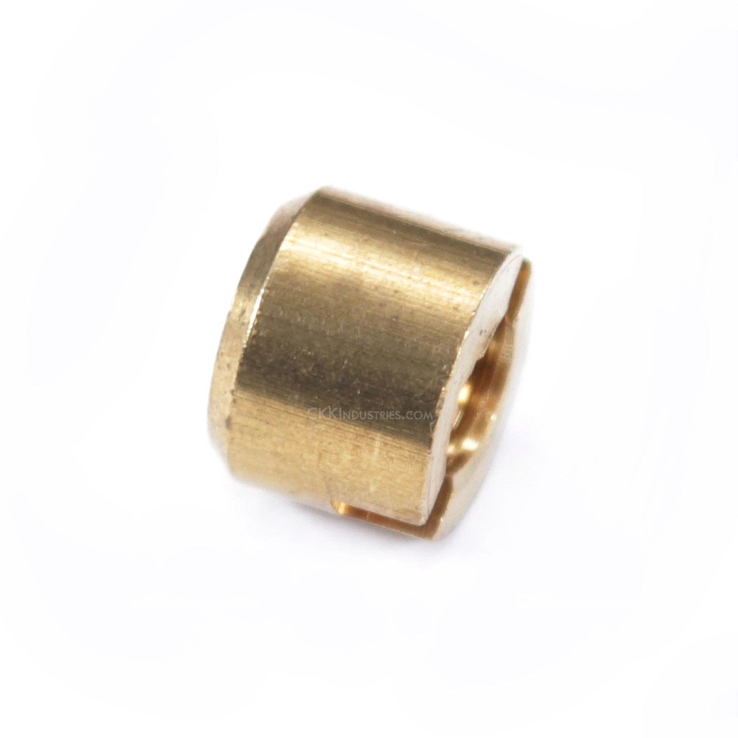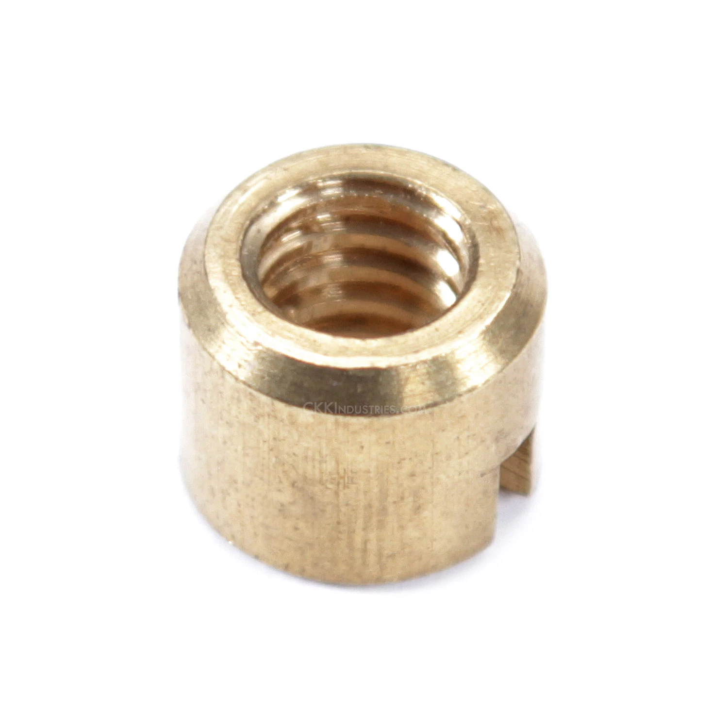 This CKK designed brass tang nut fits many of the hidden tang blades on the market today and will also work great on custom hidden tang knife designs. Threaded 1/4-20 (and slotted on one end for tightening-up the handle) this brass tang nut will hold your handle and pommel tight for a secure, attractive finish.
