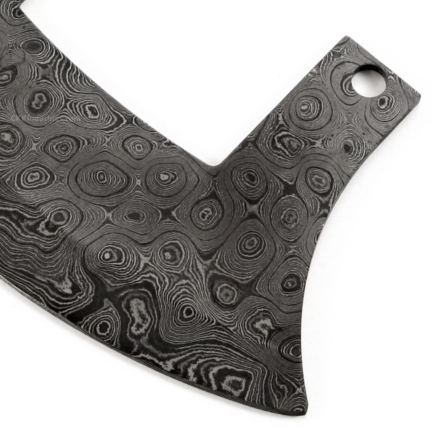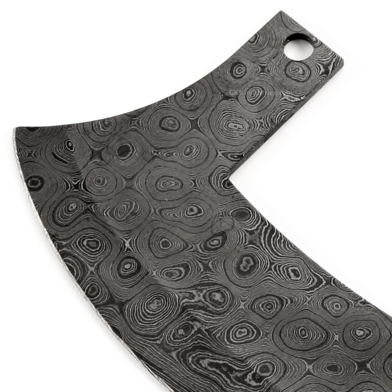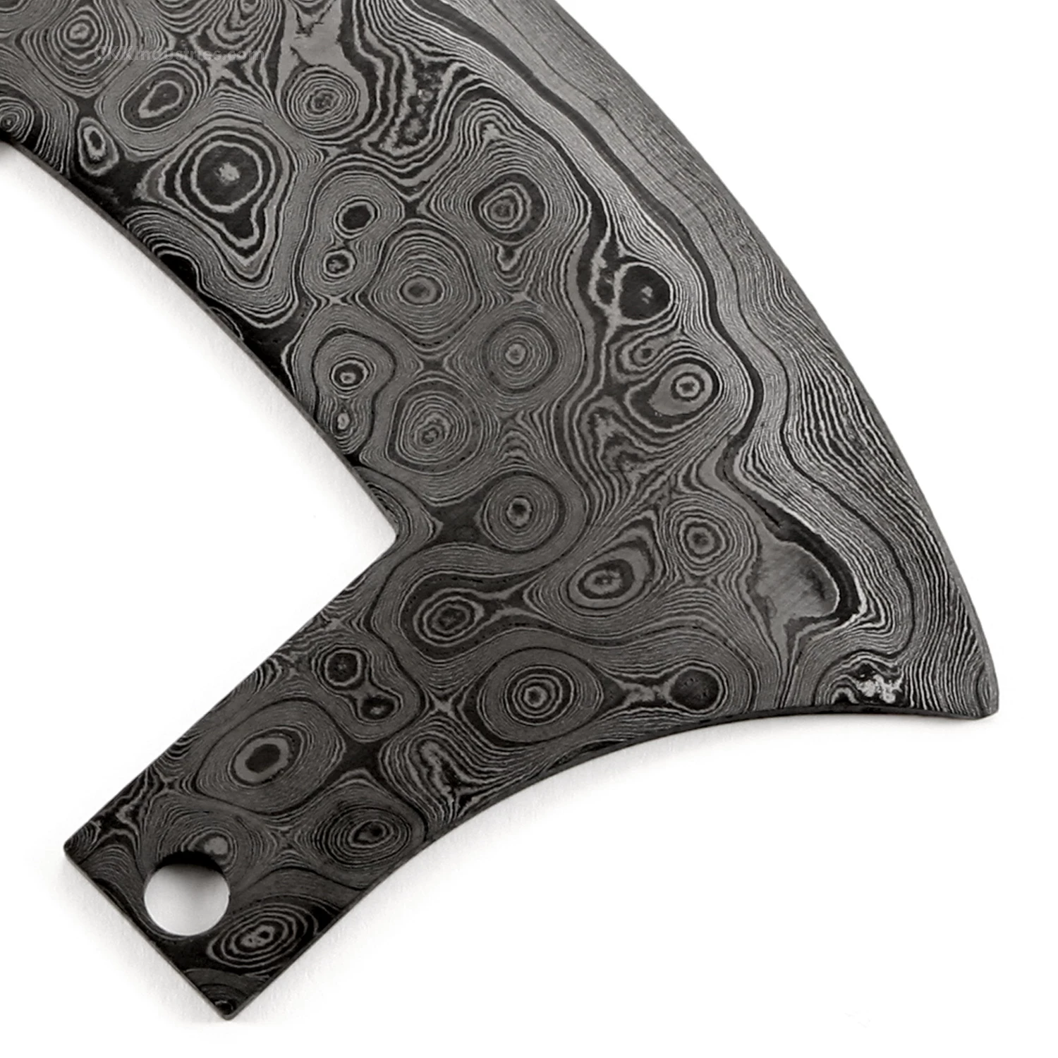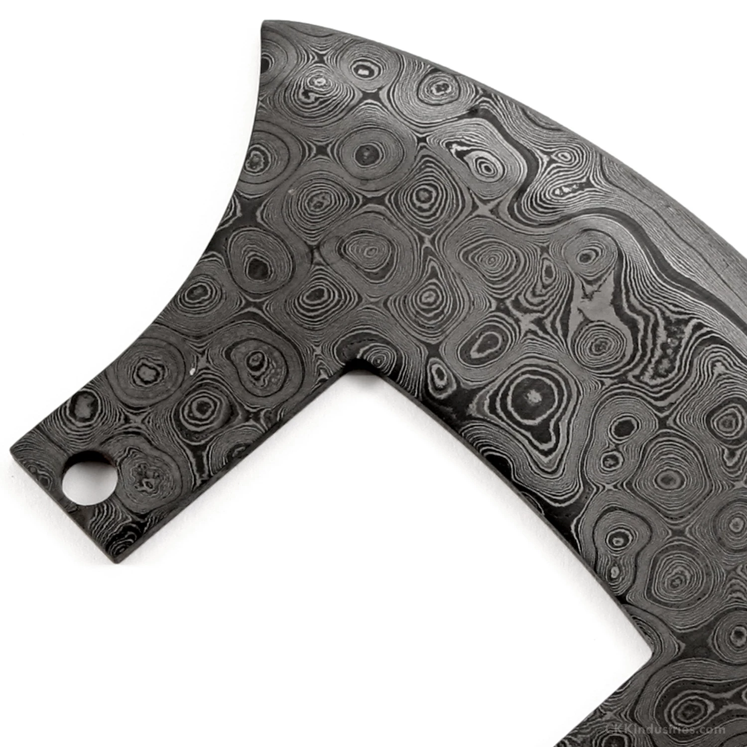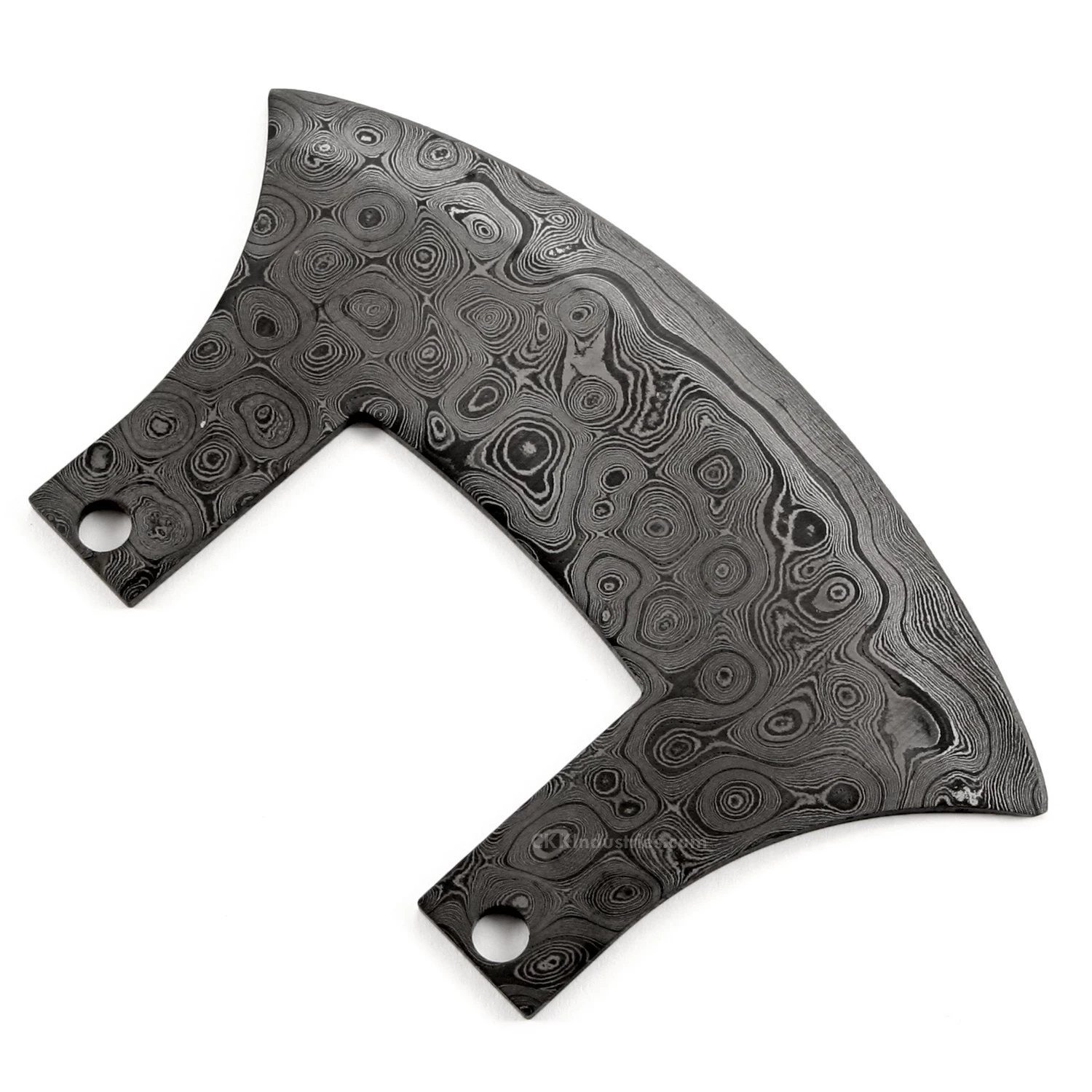 This great looking damascus knife blank is called the “Ulu”. It is a USA Made carbon steel damascus blade blank design that is hollow-ground and ready to build. This damascus knife making kit model makes a great personal display piece and can be finished with an unlimited numer of handle treatments. It will also impress as a collectible gift project.