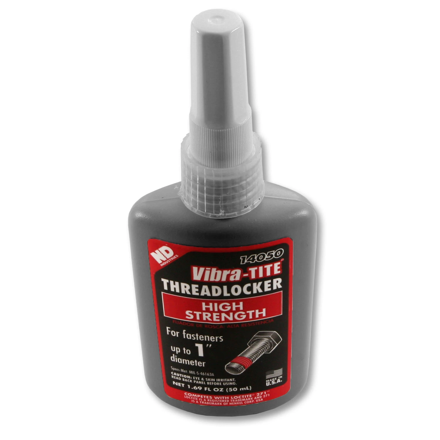 This formula is a high strength anaerobic threadlocker designed to permanently lock fasteners. It exhibits good temperature and solvent resistance and performs on aluminum, steel, plated, stainless steel and special alloy parts. This threadlock formula locks and seals fasteners and screws up to 1” in diameter.