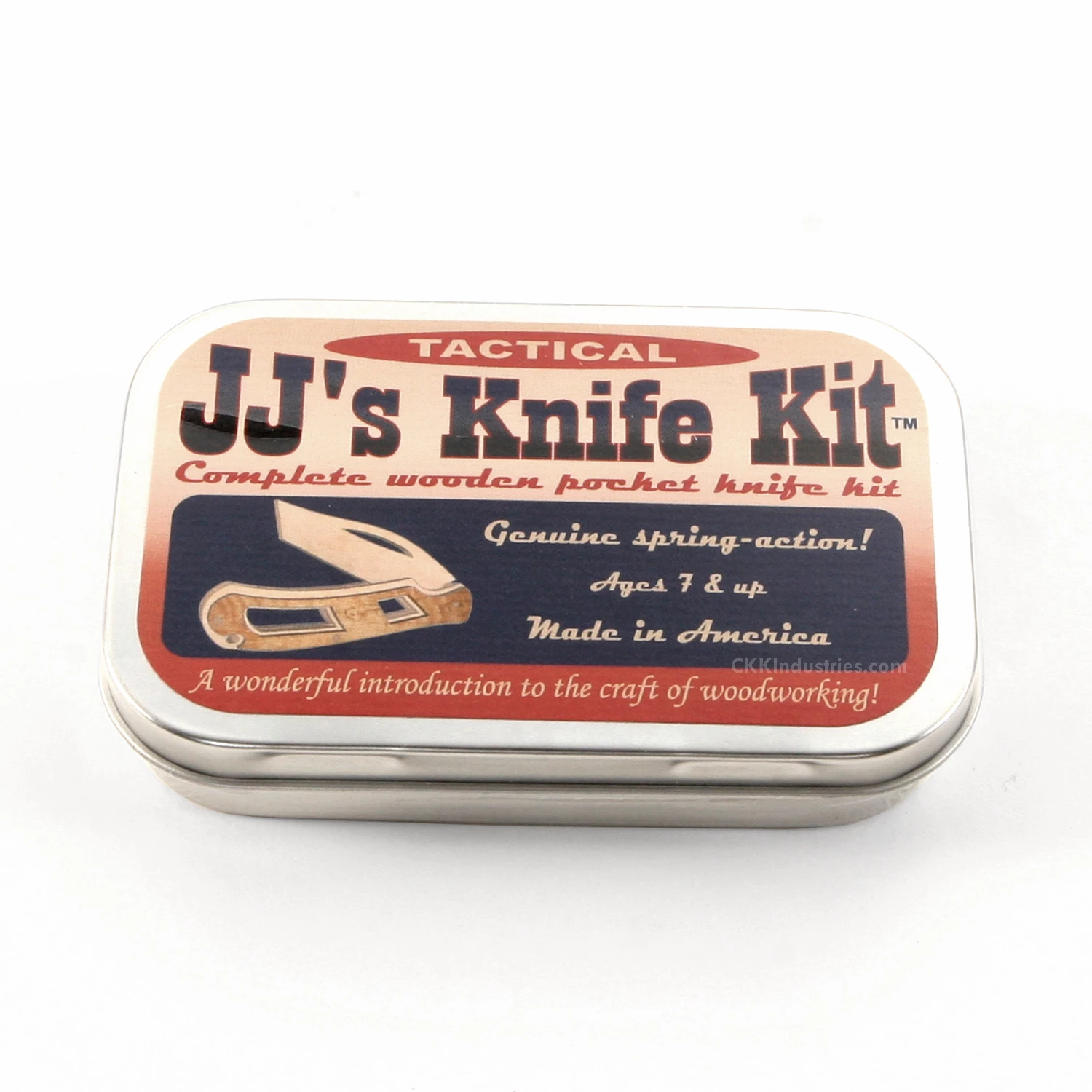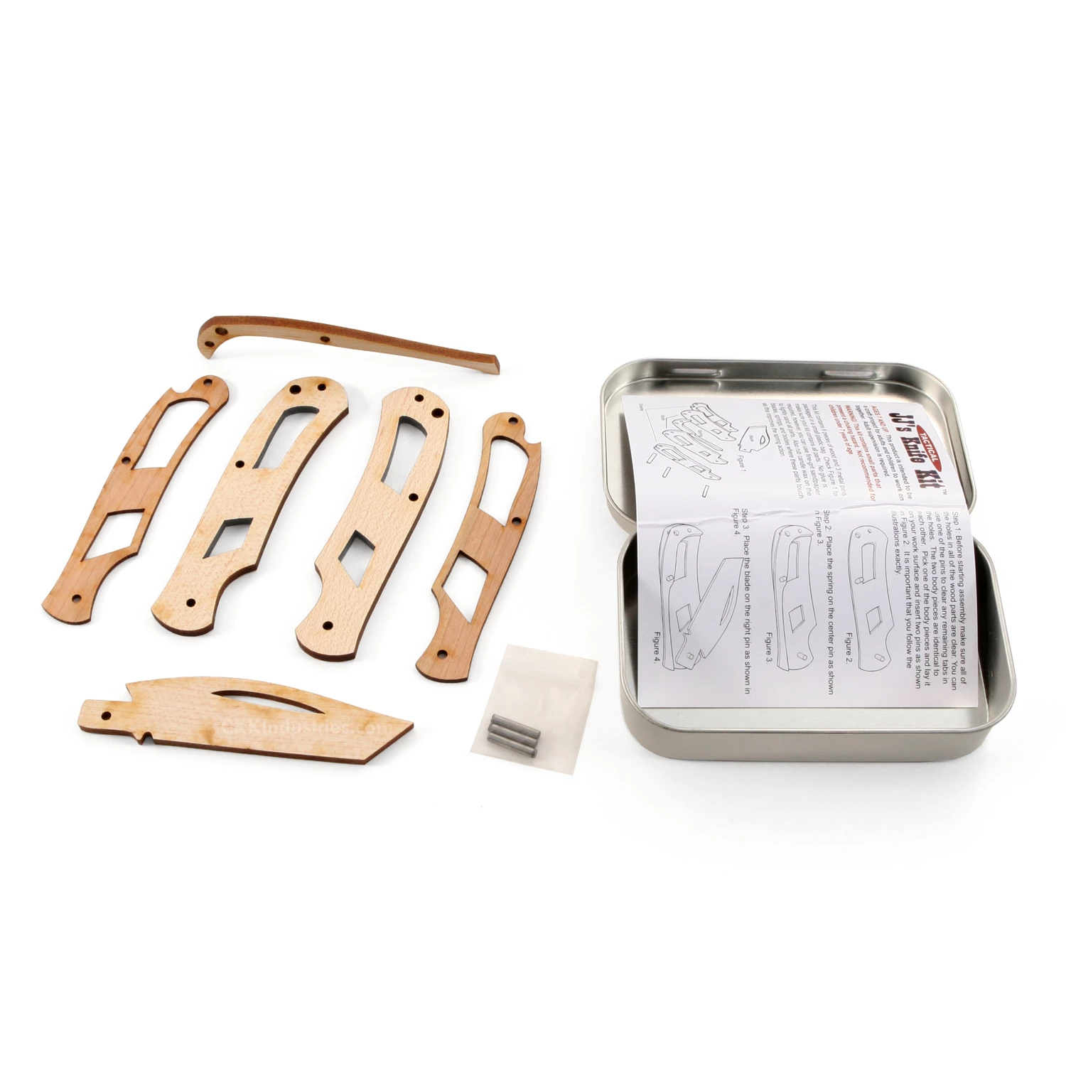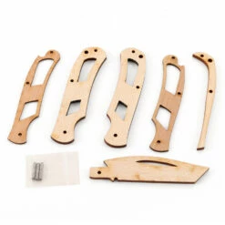 The “Woodtack” is a single blade tactical style wooden folding knife kit. It is made from all-wooden parts (except pins), and is a fully functional single blade slipjoint design, complete with “spring action”. This wooden knife making kit is great as a gift for kids, cub scout projects, or just for fun! Try one… you’ll have a hard time putting it down! Assembly instructions included.